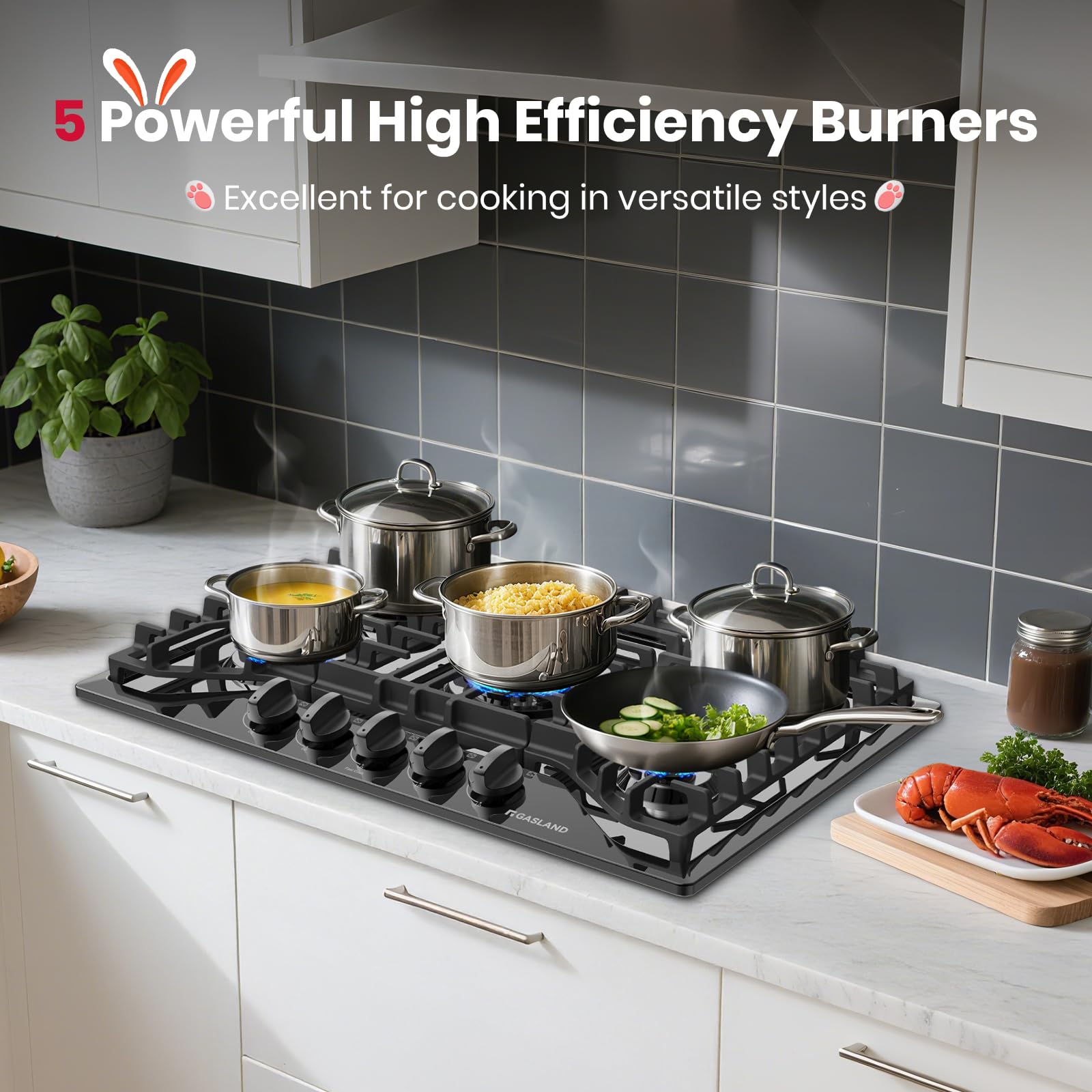 【5 Powerful High Efficiency Burners】This drop in 36 inch gas cooker features 5 Italy Sabaf high efficiency sealed burners. 10,300 & 13,000 BTUs high output burners for boiling, searing, pan frying. And 4,000 and 7,000 BTU simmer burners delivering consistent and accurate low heat for delicate cuisines. Excellent for cooking in versatile styles.