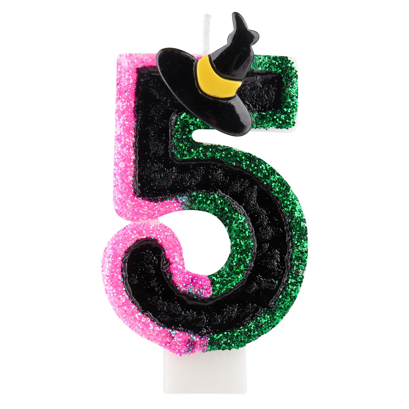 Hongplus Birthday Number 5 Candles for Cake, Pink Green Black Party Decorations, Witch Birthday Party Decorations for Girls, Pink Green Birthday Candles, Cake Candle, Party Candle 3D Design Shinning Glitter Birthday Number Candles Features: Vivid Delicate appearance 3D visual sense: The pink green black witch happy birthday cake candles are meaningful for you to celebrate your girls magic birthday and nice cake topper decoration for embellishing your cake and cupcake,creating magic atmosphere and adding a touch of elegant. Adapt to the venue: Ideal pink green cake decoration for many occasions, such as girls birthdays, pet birthdays, baby showers, anniversaries, retirement parties, family reunions, weddings, must-have items for party cake, bring you memorable and meaningful magic party. Specifications: Quantity: 1 piece Material: wax Candle length: approx. 7.1cm/2.8in Tray is approx. 2.8cm/1.1in in diameter Stick is about 6.3cm/2.48in long. Color: Pink Green Black Package includes: 1 x Shinning Pink Green Number 5 Birthday Candle for Girls Witch Birthday Party Decoration Warm notices: Please allow little error on the size due to manual. Do not leave the lighted candles unattended. Please place candles out of reach of children. And please do not light candles on or near flammable materials. Please keep the candle away from the fire when not in use, when burning, adult's supervision is needed.
