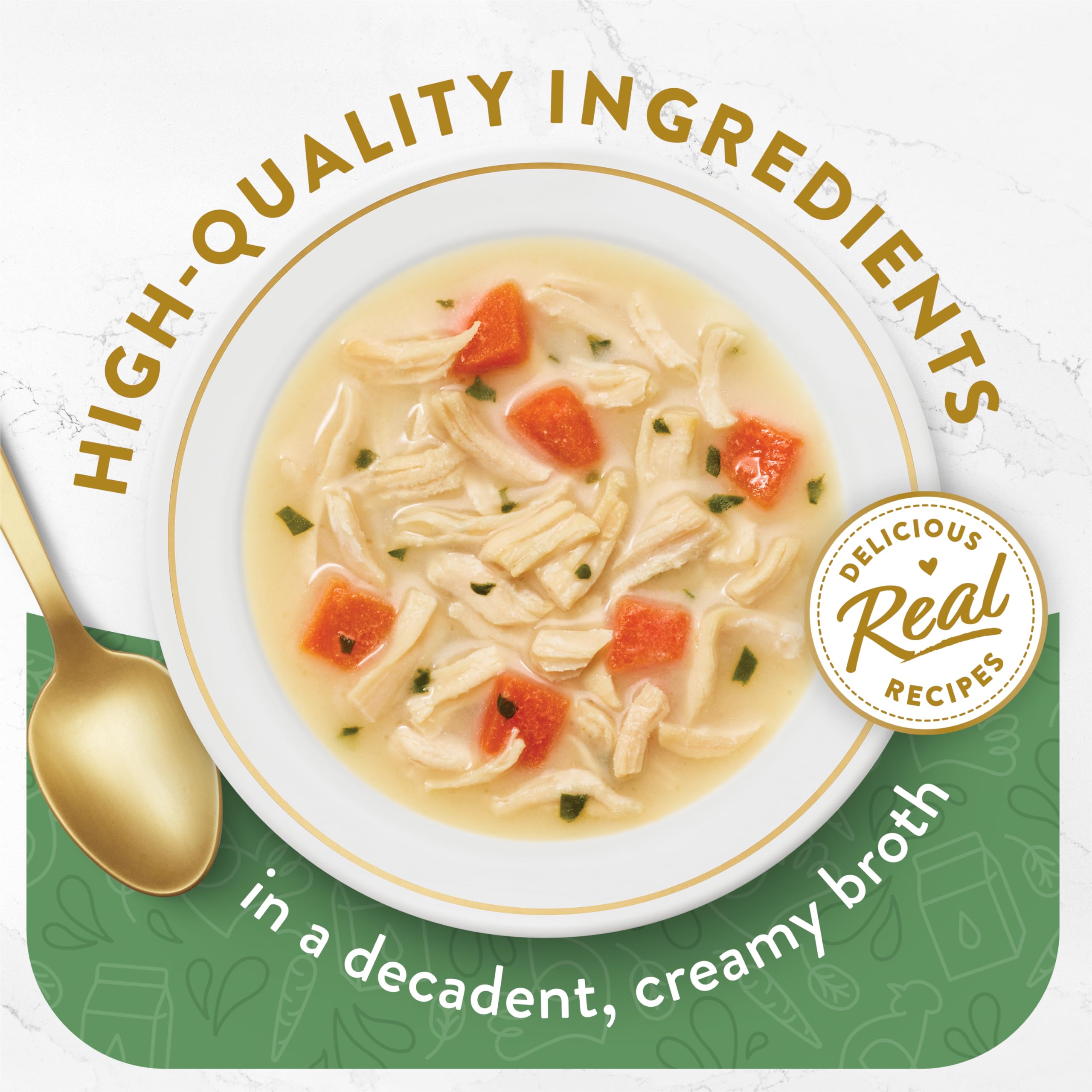 Delicious Cat Broth: Fancy Feast Broths Creamy Senior Cat Food Topper is made with real white meat chicken and vegetables in a creamy broth.