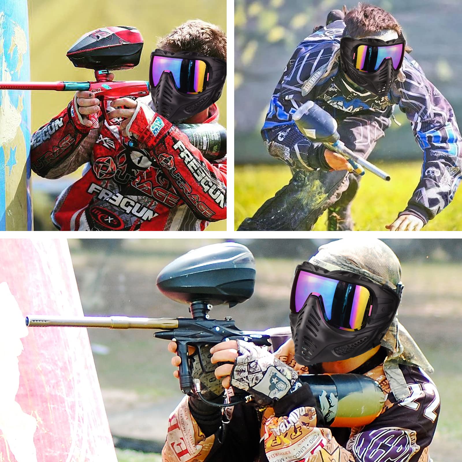 High strength lenses - withstand 460 FPS of bbs shooting within 5 meters when you equipment our paintball mask anti fog. However, you need to be aware that if you use airsoft guns above this standard, you must use goggles to keep your eyes safe in airsoft games.
