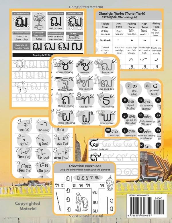GURU Thai: The Ultimate 5-in-1 Thai Learning Workbook for Beginners 1 Master Thai Step by Step – A Beginner’s Guide for Kids & Adults 138 Pages of Consonants, Vowels, Tone Marks, Tracing, Writing, Numbers & Practice Exercises -------------------------------------------------------------------------------------------------------------------------------------------------------------- Want to learn Thai but don’t know where to start? GURU Thai Learning Workbook for Beginners 1 is your ultimate step-by-step guide to mastering the Thai language with ease! Designed for self-learners, students, and language enthusiasts, this comprehensive 5-in-1 workbook makes learning Thai simple, engaging, and effective. What You’ll Learn Inside: ✅ 44 Consonants – Large, clear letters with guided charts, explanations, and images for easy memorization. Includes font variations to train recognition of different character styles. ✅ 32 Vowels – Pronunciation tips for long and short vowels, stroke order guidance, and tracing exercises for accuracy. ✅ Tracing & Writing Practice – Develop strong handwriting skills with structured tracing exercises and detailed stroke-by-stroke guidance. ✅ Tone Marks & Pronunciation – Understand the five Thai tones and how they change the meaning of words. ✅ Thai Numbers & Counting – Learn Thai digits, pronunciation, and counting patterns with hands-on tracing practice. ✅ Engaging Practice Exercises – Reinforce your learning with fun and practical activities. Why Choose GURU Thai? Beginner-Friendly & Step-by-Step – No prior experience needed! Perfect for Self-Study – Learn at your own pace, anytime, anywhere. Clear Explanations & Visual Guides – Making Thai script and pronunciation easier than ever. Workbook Features: 138 pages of structured lessons and exercises Premium cover design & high-quality white paper Large 8.5 x 11-inch format for easy writing practice Start Your Thai Learning Journey Today! Whether you're traveling, connecting with Thai culture, or learning for fun, GURU Thai is the perfect workbook to help you succeed. 🛒 Click "Add to Cart" and get your copy now! 🚀
