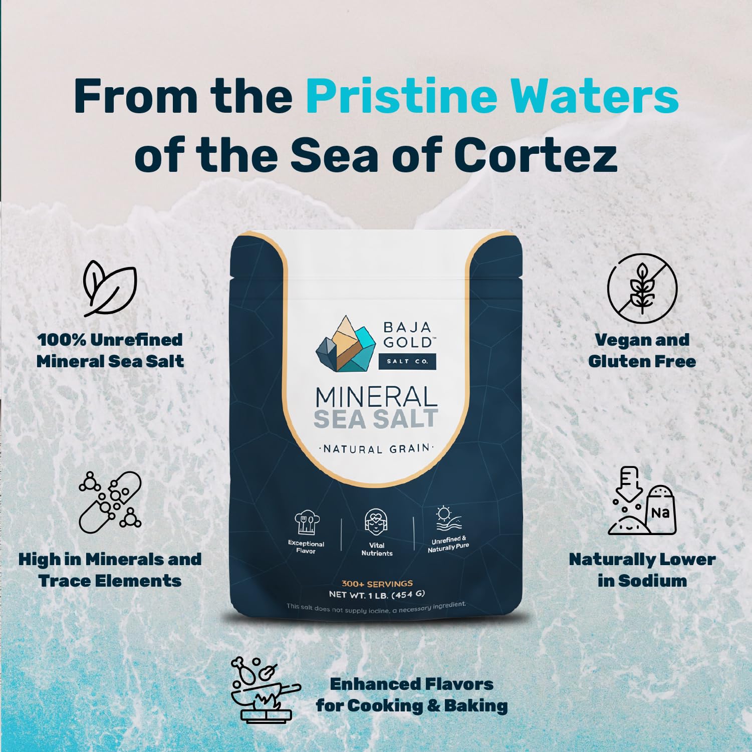 NATURAL UNREFINED SEA SALT – Baja Gold Mineral Sea Salt is carefully harvested to retain its natural trace minerals. Unlike processed salts, this organic sea salt delivers a clean, fresh taste, perfect for cooking and seasoning dishes.