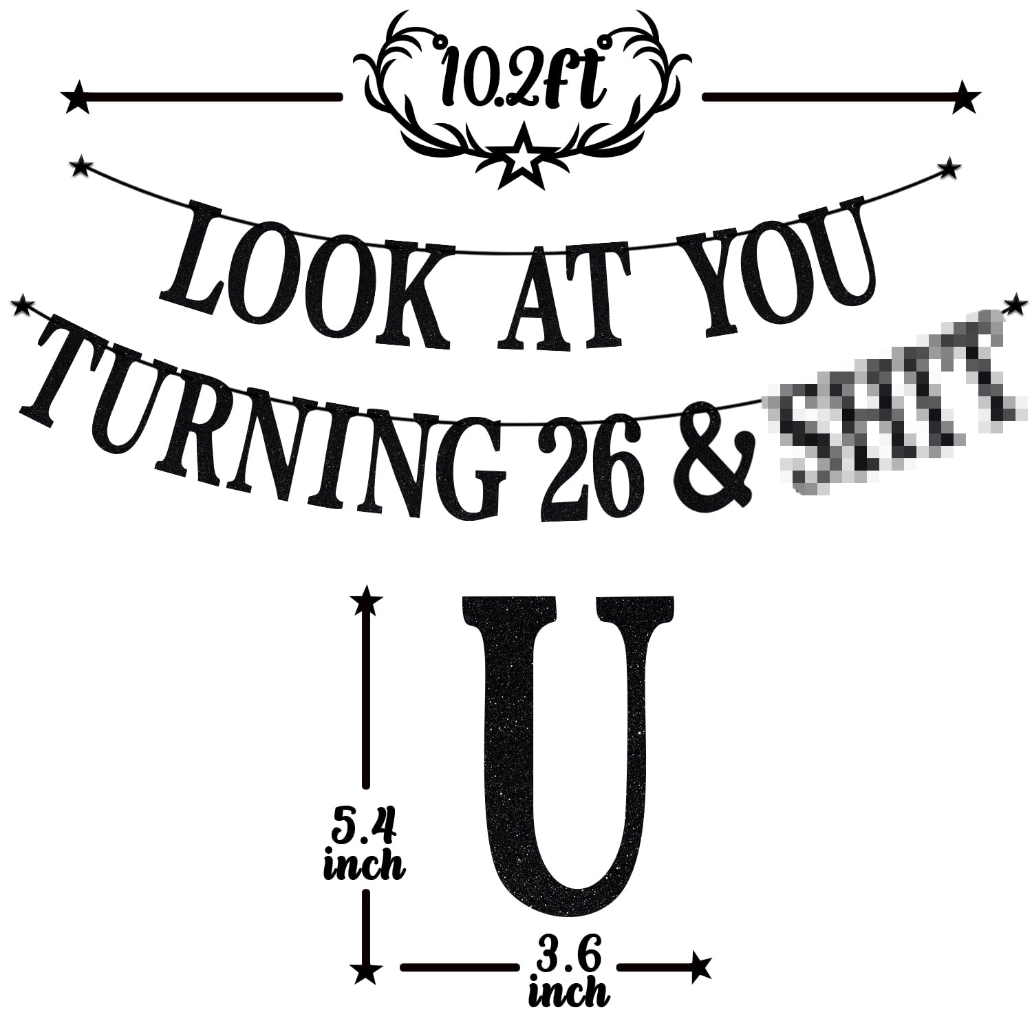 Received included: Letter cards spelling the phrase "Look at You Turning 26 & Sh*t". Awesome decorations: It is very suitable for the 26th Birthday party. Special party decorations can add an enjoyable and active atmosphere to these scenes, leaving a happy and unforgettable memory. High quality: Banners are made of glitter premium cardpaper. They are rigid and reusable. Easy to DIY: The card and the rope are separate, you only need to spend a little time to assemble. Choose us and believe us: We support the concept of customer first and product first. If the quality or damage occurs during transportation, we will solve it.