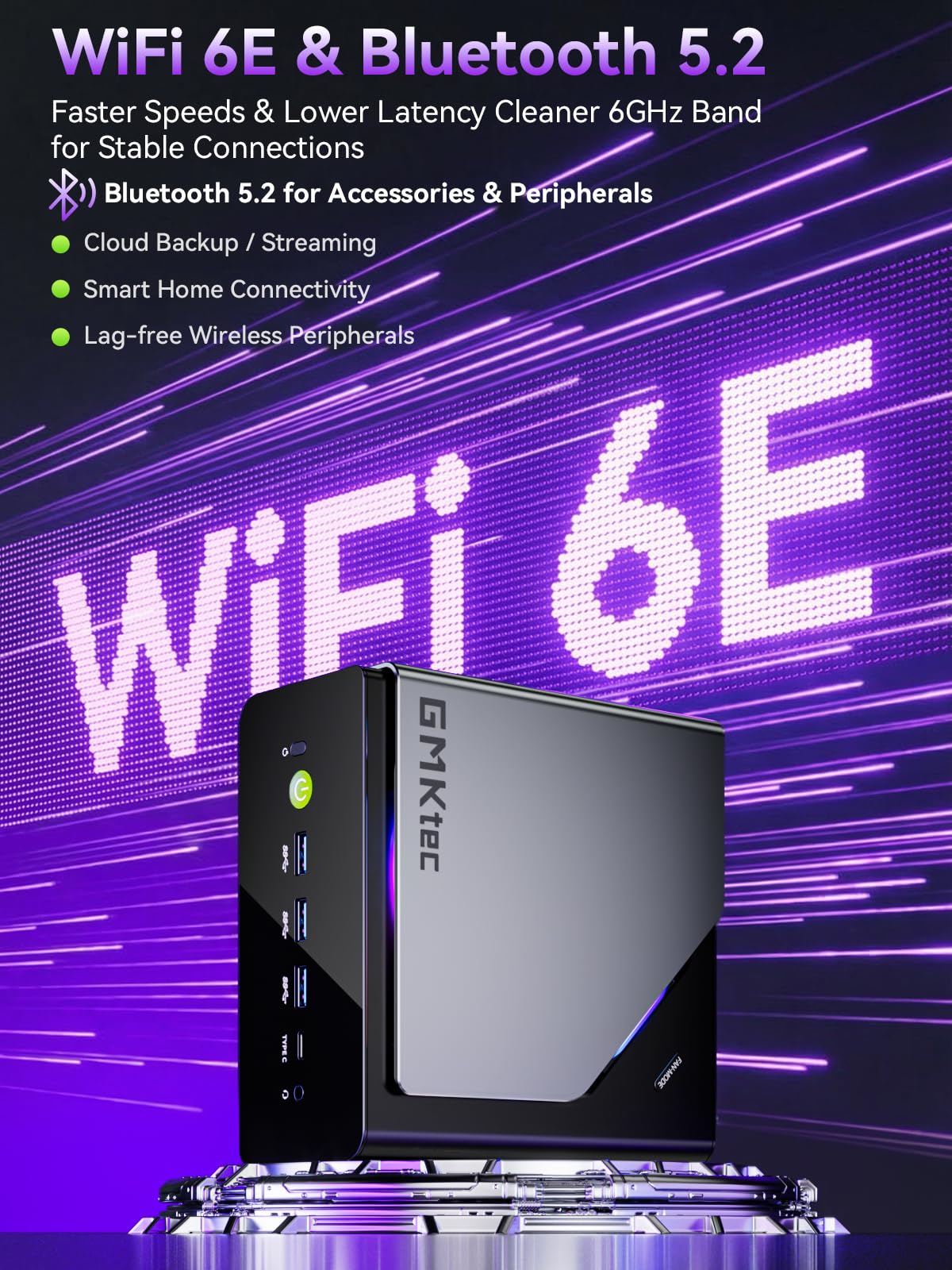 DUAL NIC FAST 2.5GBE + WIFI 6E + BT 5.2 - Dual Ethernet 2.5GbE LAN port design provides more applications, such as firewall, multichannel aggregation, soft routing, file storage server. Built-in WIFI 6E / Bluetooth 5.2 is more stable and efficient to connect multiple wireless devices such as projector, printer, monitor, speakers and etc