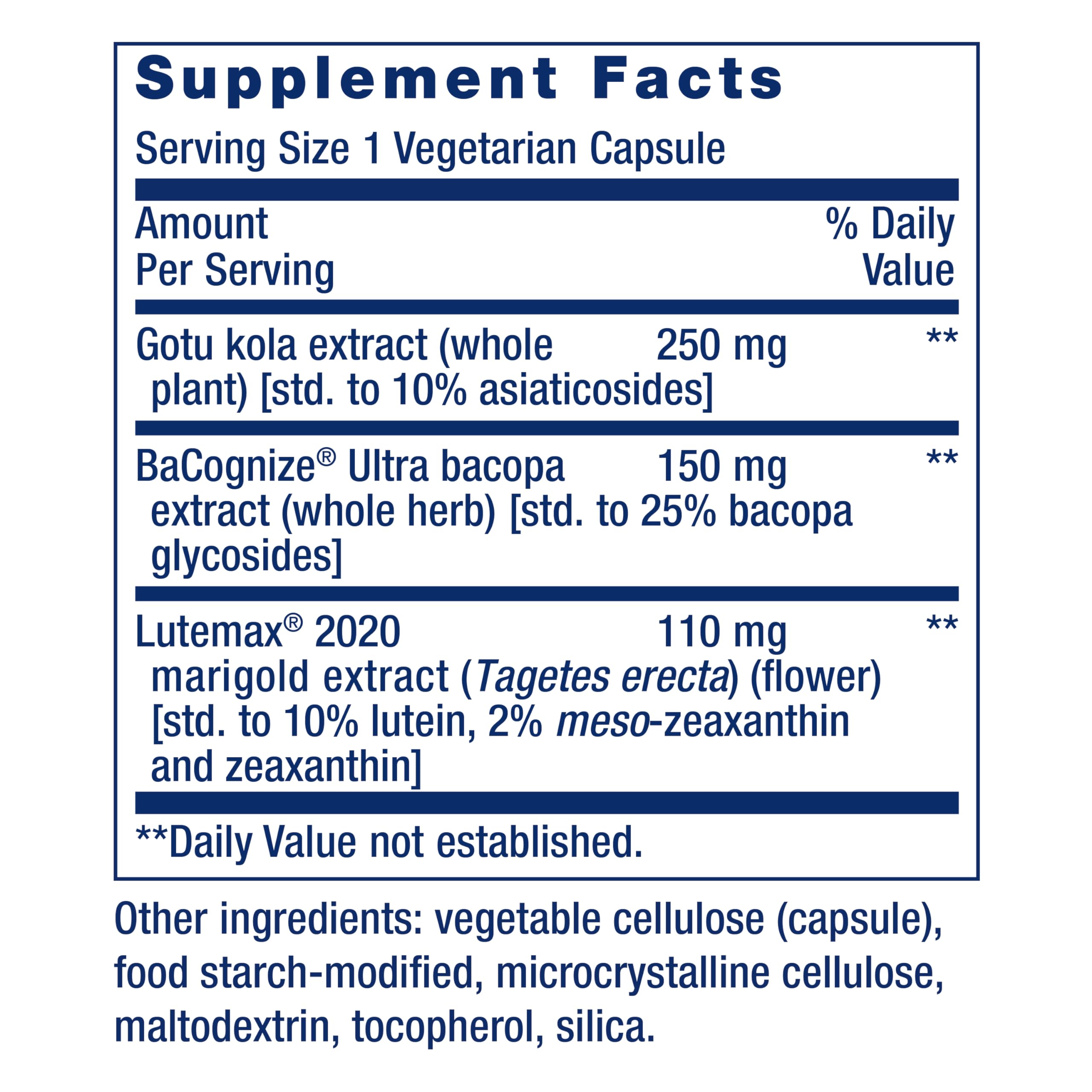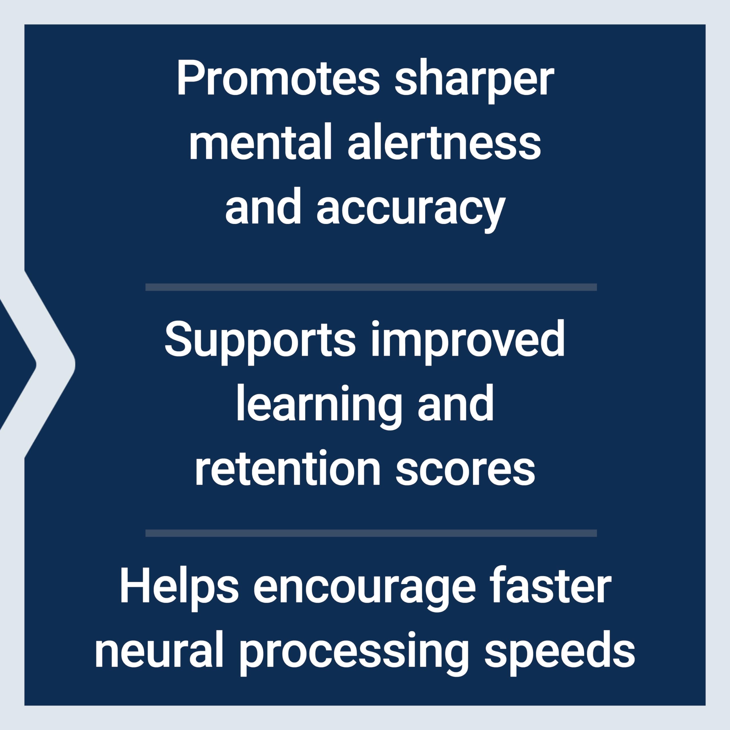 Supports learning and retention – Learning quickly and retaining what you learn is vital for navigating everyday life. The combination of lutein, zeaxanthin, gotu kola, and bacopa helps you remain focused to learn faster and improve your performance.