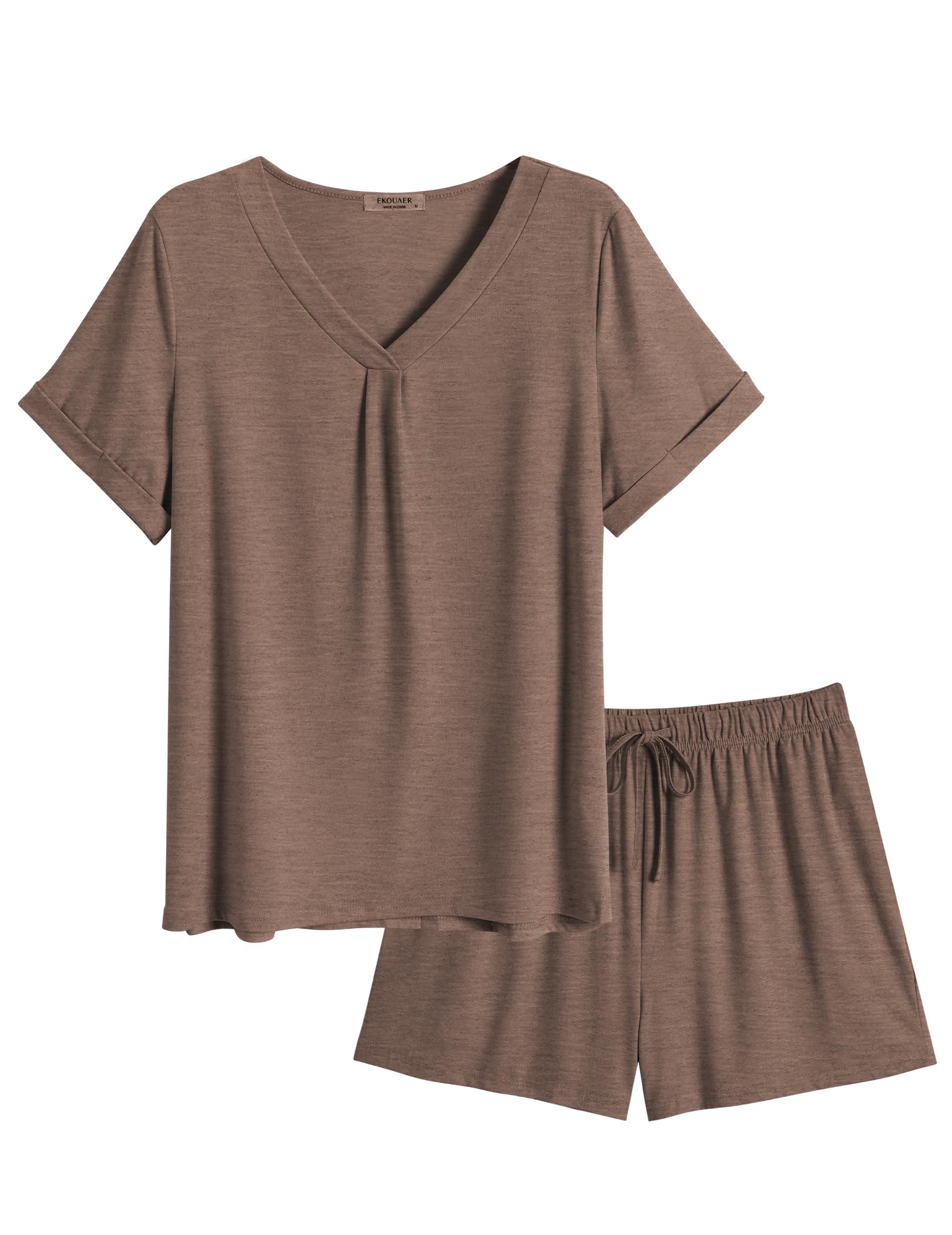 【Material】The fabric of this pajamas set for Women is 76% Polyester + 19% Viscose + 5% Spandex, which is super soft, lightweight, skin-friendly, stretchy, breathable and moisture wicking.