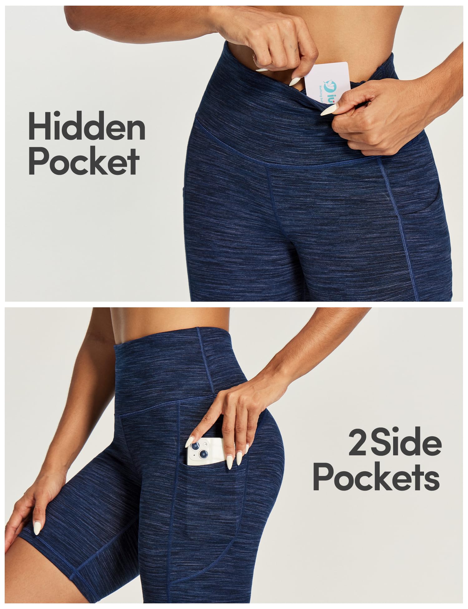Being Hands-Free is Everything. IUGA Athletic Shorts feature 2 side pockets and 1 inner pocket in the waistband, allowing you to easily stash your phone or keys without weighing the shorts down. Now, no more worry about exercising with something in your hands. The IUGA women's yoga shorts will be your ideal choice for workouts