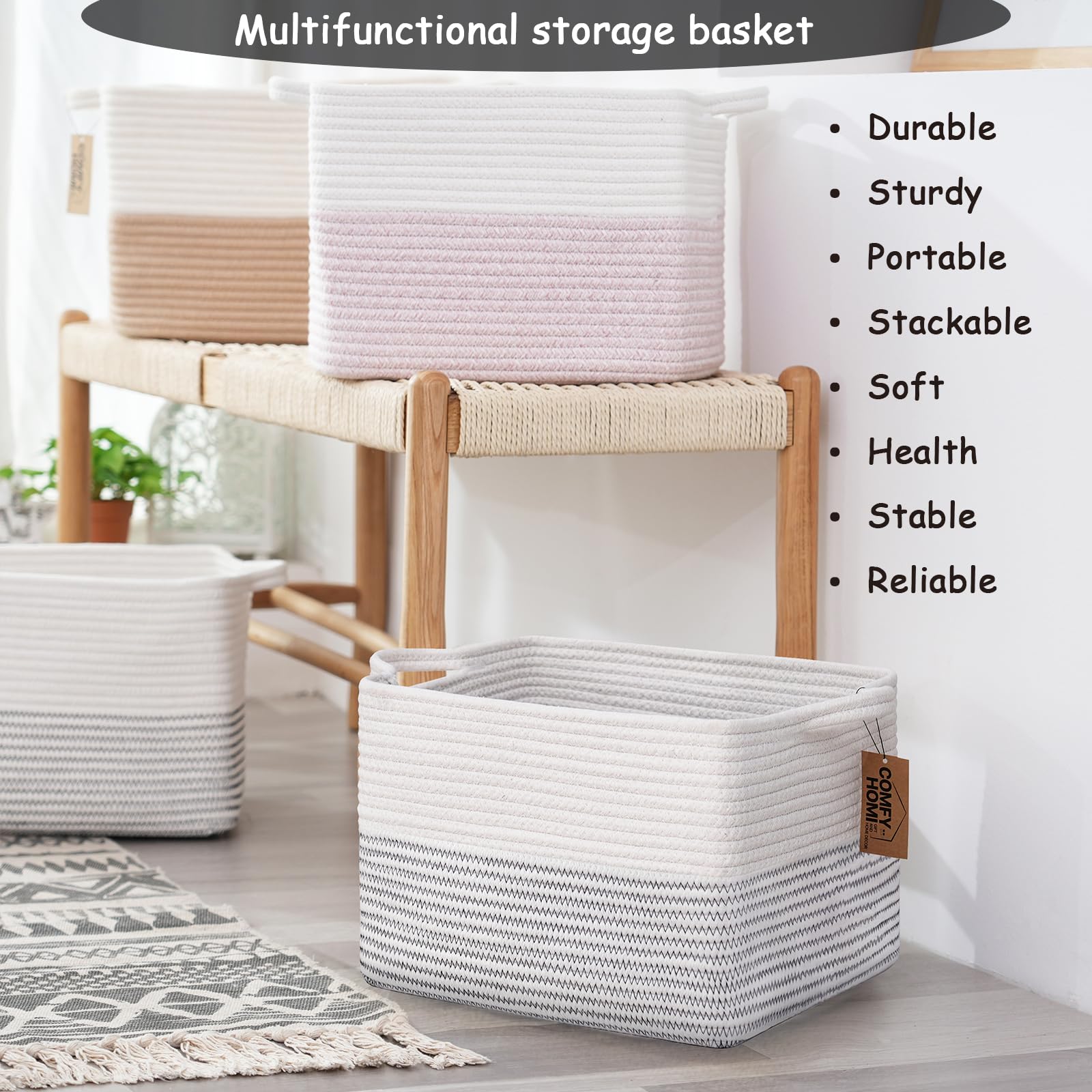 Safe Cotton Rope Basket:Naturally Health material of cotton rope basket without any harmful elements. It is safe to use and create a good sense of nature in your beautiful home