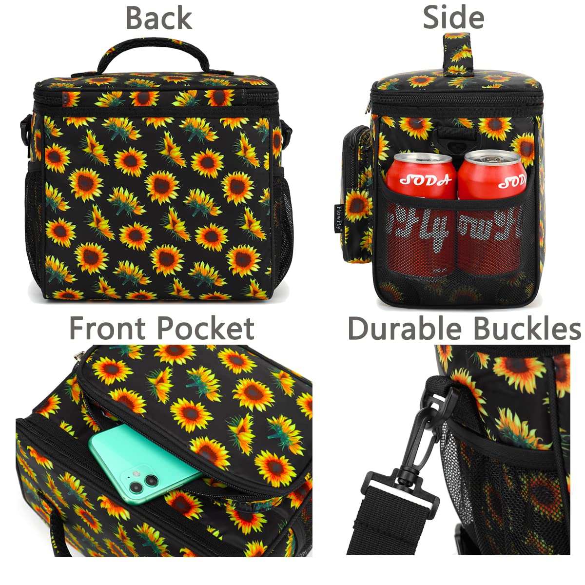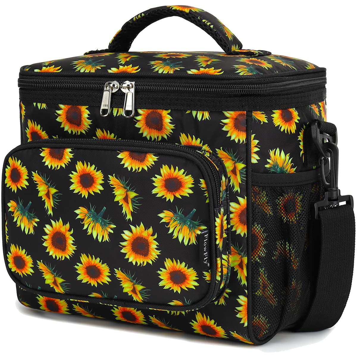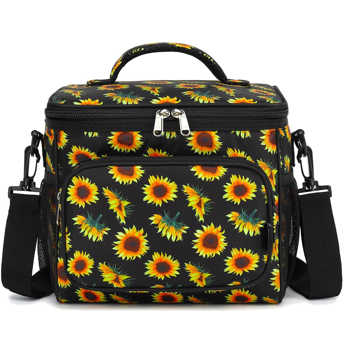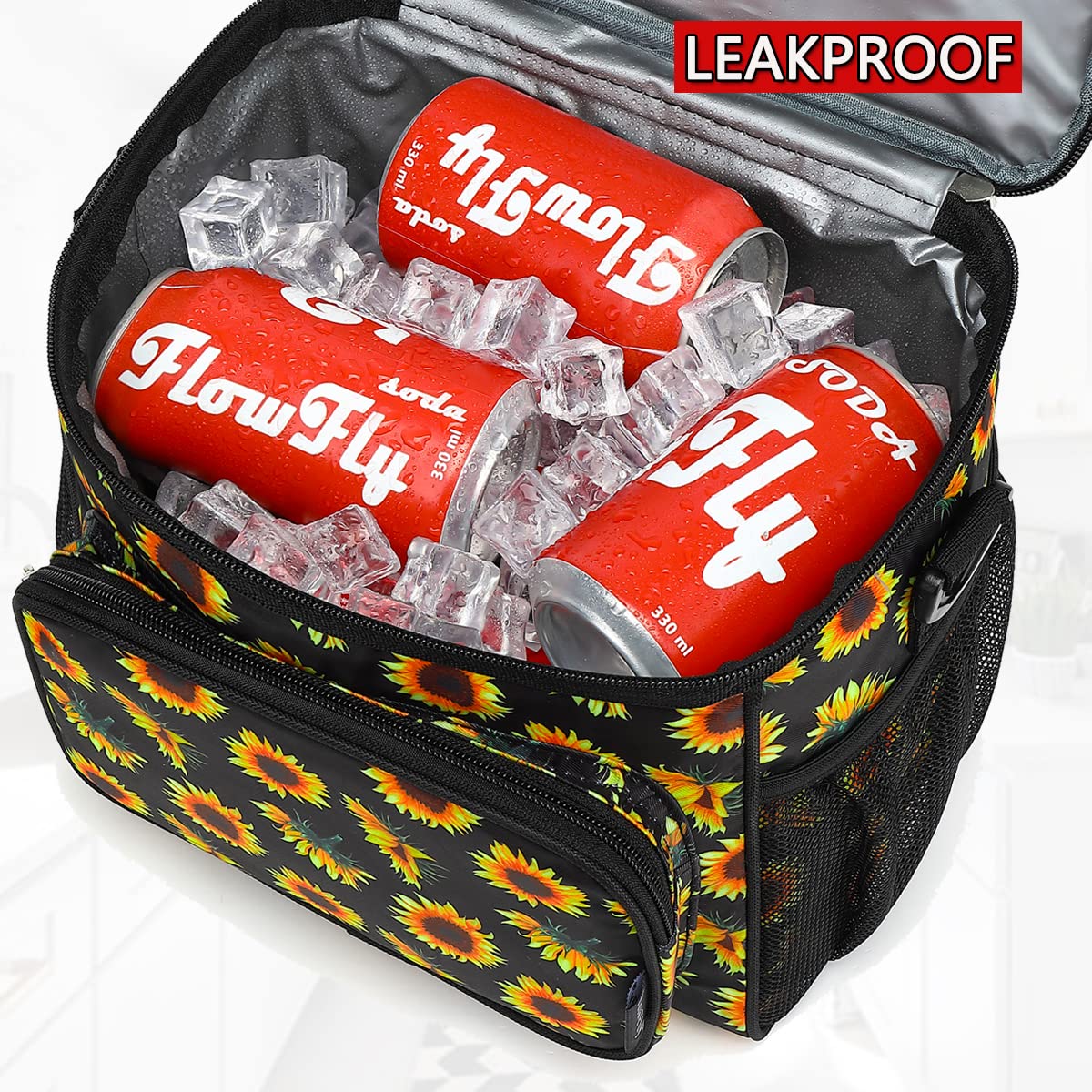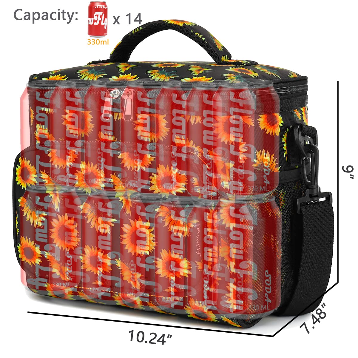 ✿ Large Size:the dimension of the container is:10.24”L×7.48”W×9.06”H,but not too bulky , it could give roomy storage space you need to hold your favotite meals,delies and lunch treats.You could fill the roomy compartments or pockets with lunch boxes, food containers, condiments,fruit salad bowls,utensils,napkins,can opener,wallet,keys and other essentials. Keep your water bottles or energy drinks inside the mesh pocket and quench your thirst of the spot.