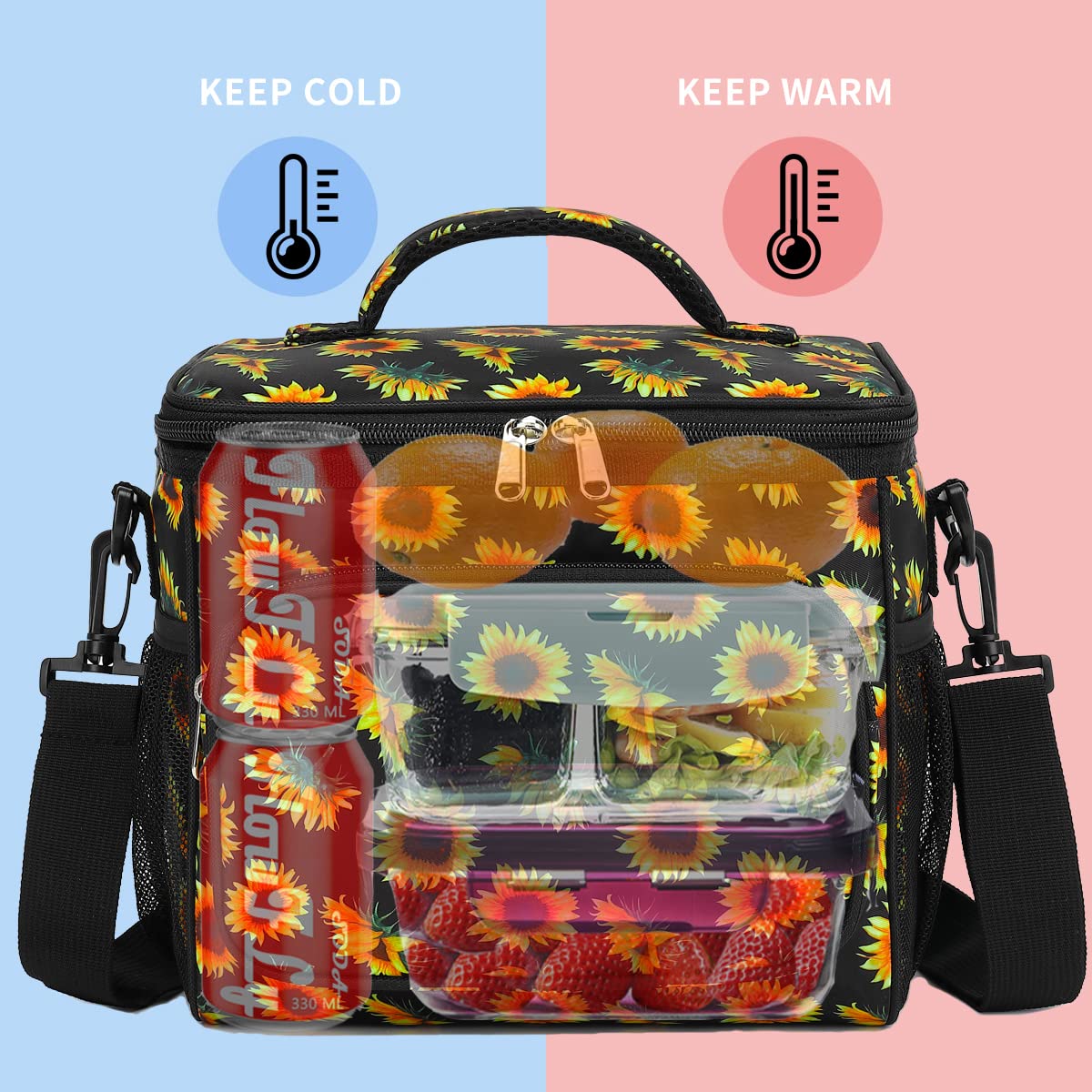 ✿ Comfortable Wear:The great thermal lunch kit is crafted, easy to carry with comfort-grip handle and removable and detachable shoulder strap.You can carry the bag by the handles when you use the top handle, and also it could be used as a crossbody bag or a shoulder bag when you use the 48" strap.Its durable and easy to pull zippers will never trouble you.