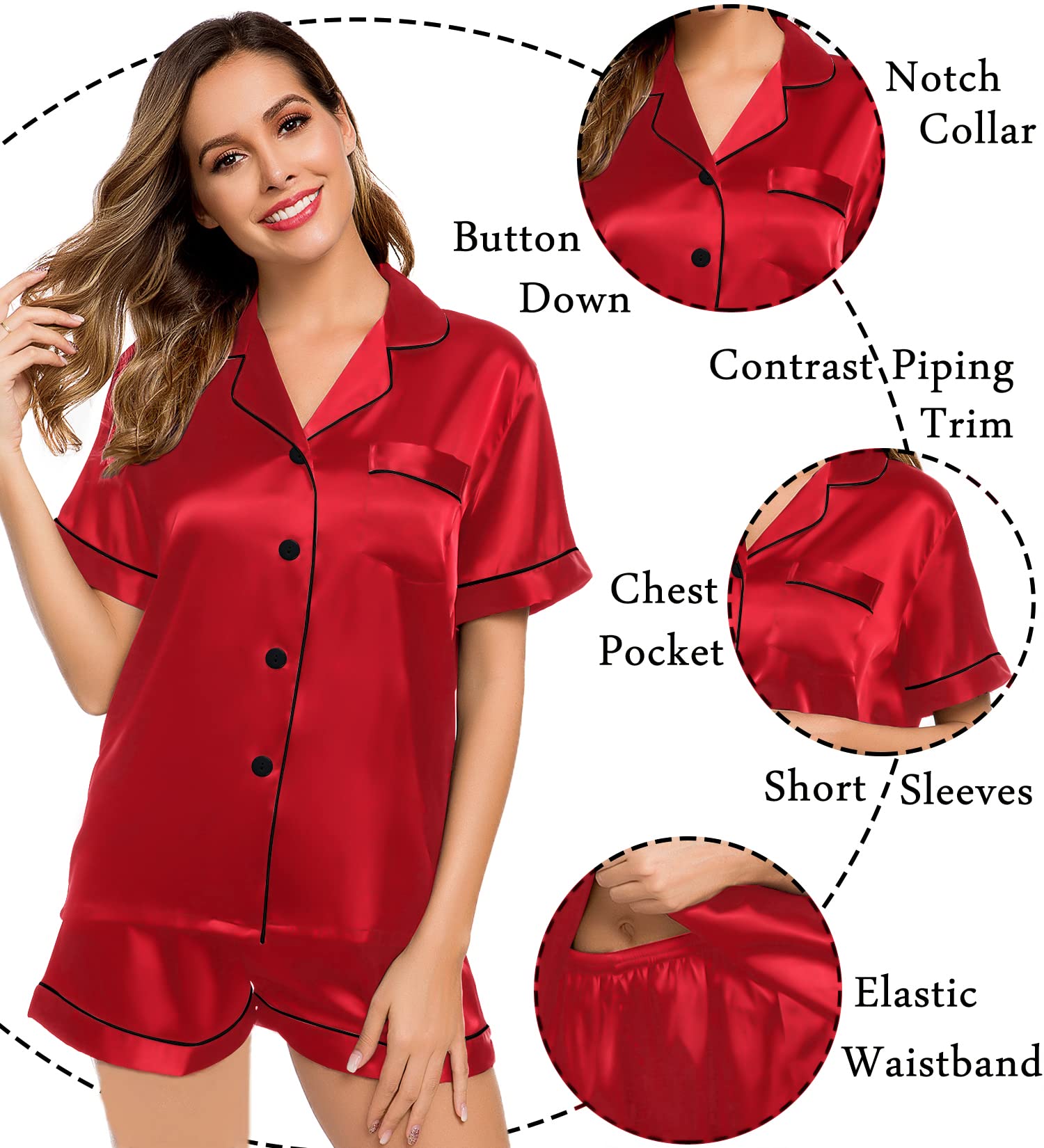 Tips: Please check the size information in the left image or under the product description before ordering. We offer newest updated design and satisfied service and please feel free to contact us if you have any problems about our short sleeve sleepwear.