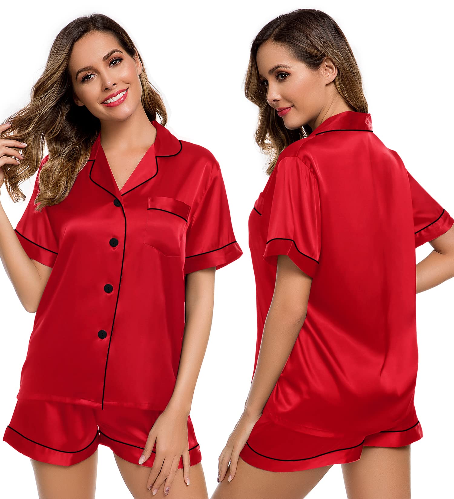 Occasion: Women's Short Sleeve Silk Satin Pajamas Set, which is suitable for daily wearing and easy to match. This ladies silk pajama sets are lightweight and easy to carry. Comfortable and suitable for lounging and sleeping, pajama party, girls day, bridal sleepwear, indoor, living room, bedroom, hotel, vocation, travel, and daily sleepwear.