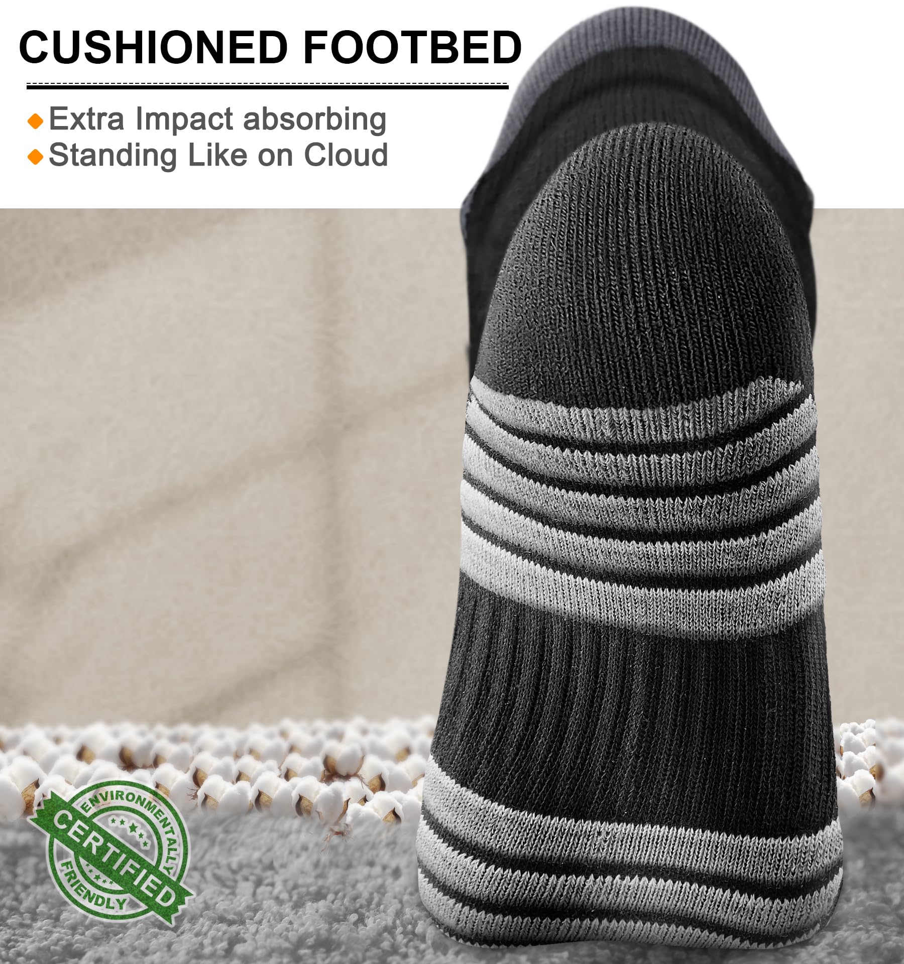 CUSHIONED FOOTBED--Experience superior comfort and support with our socks; The full-circle terry cushioning provides excellent bounce and shock absorption,making every step a delight;