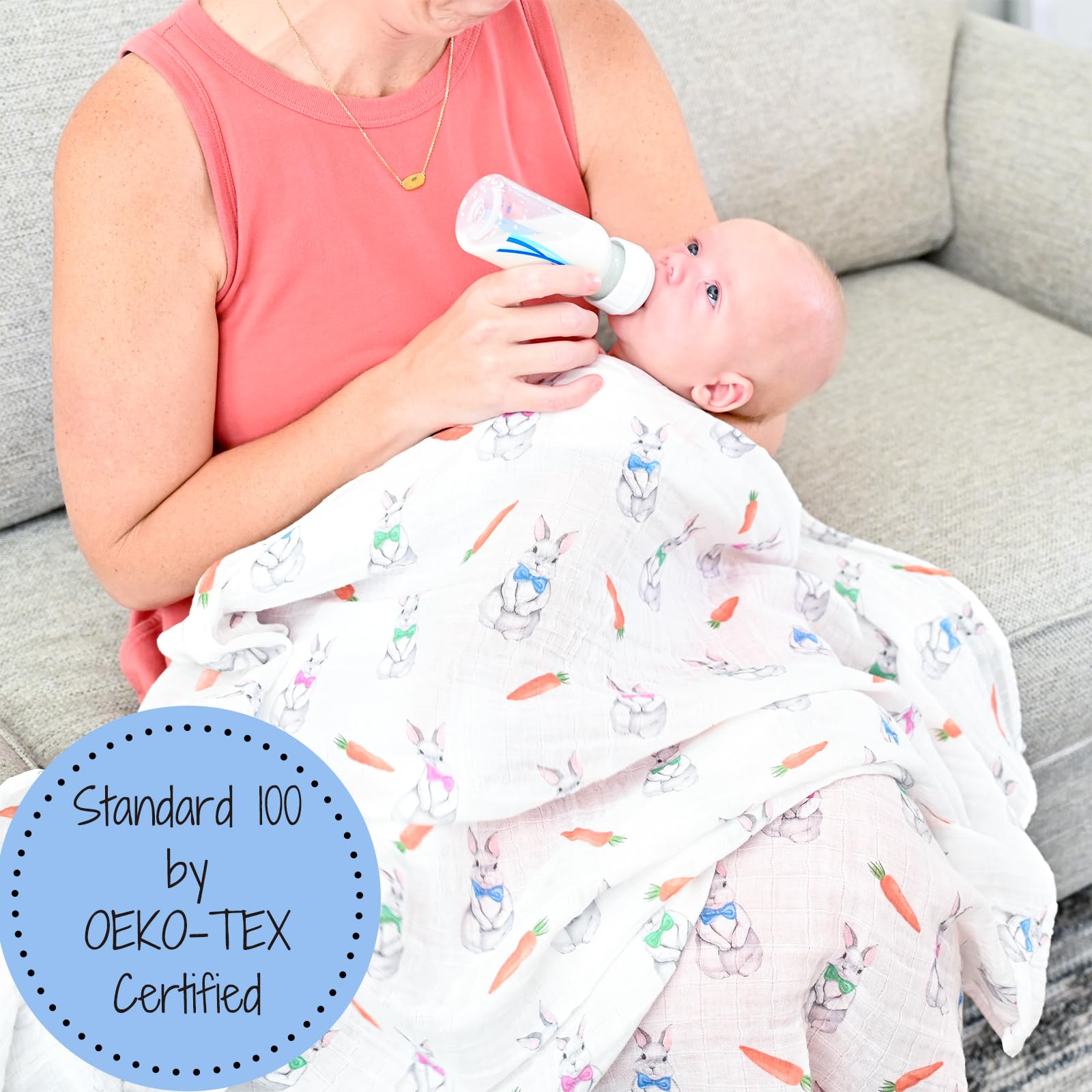 SOFT AND COZY BLANKET - Wrap your baby in our extra soft 100% cotton muslin swaddle blanket to make your baby feel safe and secure. Each 47x47 blanket provides enough space to snuggly and securely wrap your newborn.