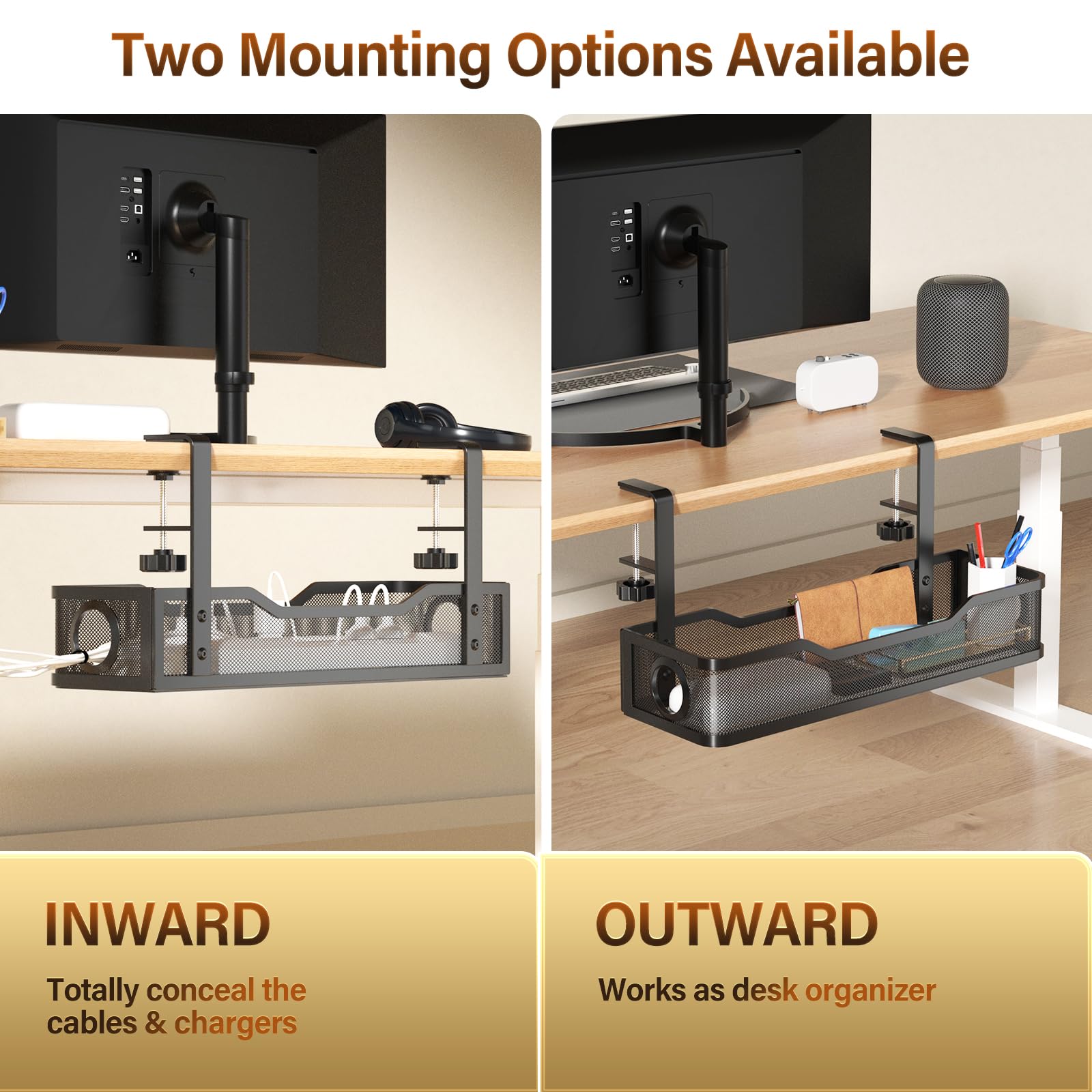 No Need to Drill Holes - Instead of damaging your desk, our under desk cable management tray can be hung directly onto desk frames and adjust the position as easily as you like, unlike other screw installations.The wire management, following thorough welding and powder coating, offers resistance to rust and dust accumulation, ensuring dependable long-term use under the desk.
