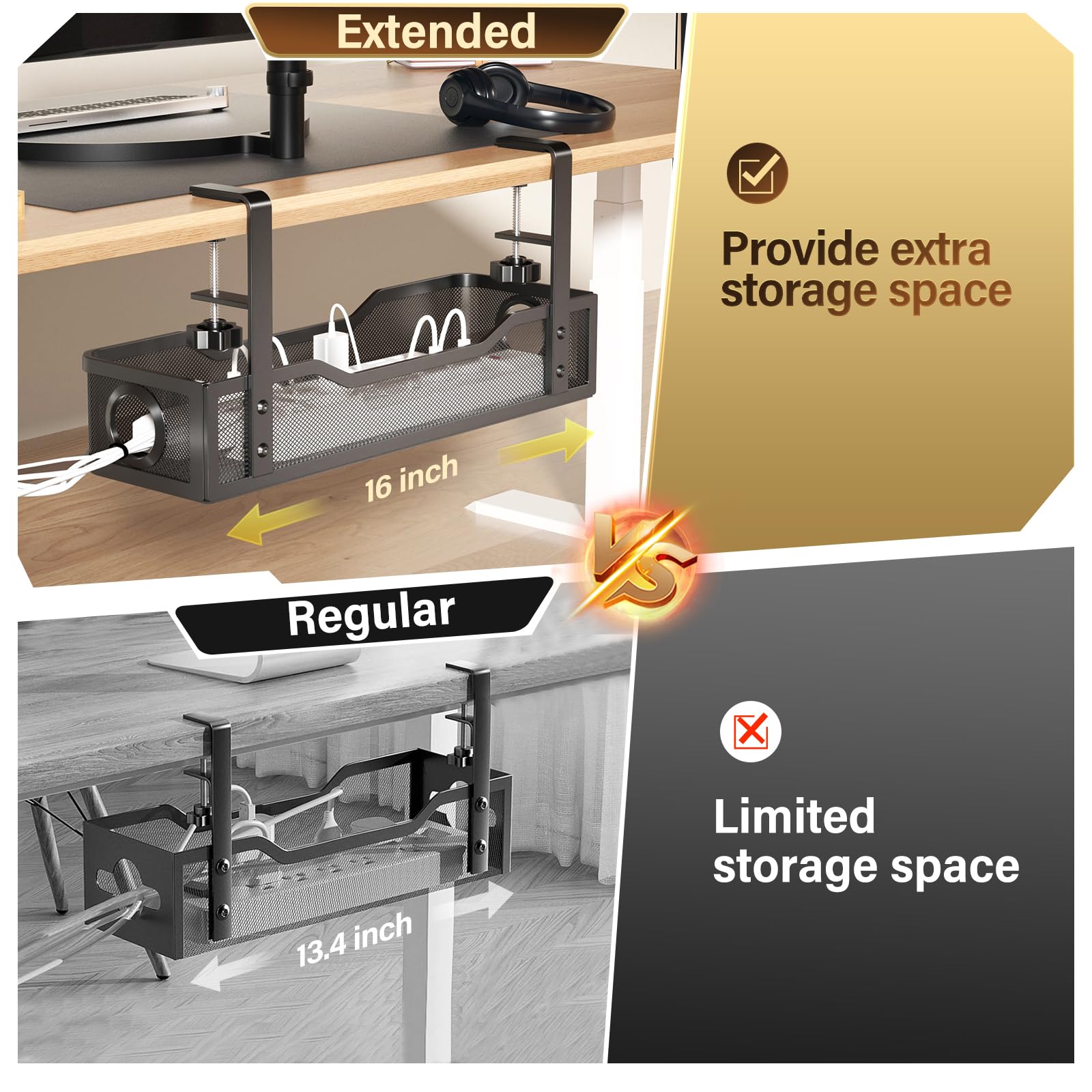 Extended Your Storage - The 16 inch under desk cable management offers more storage space than any other product, accommodating various computer cables and maximizing under-desk space, keeping your cables no more mess. This wire management solution can support up to 15 pounds, making it the perfect cable organizer for your desk and helping you maintain a tidy workspace.