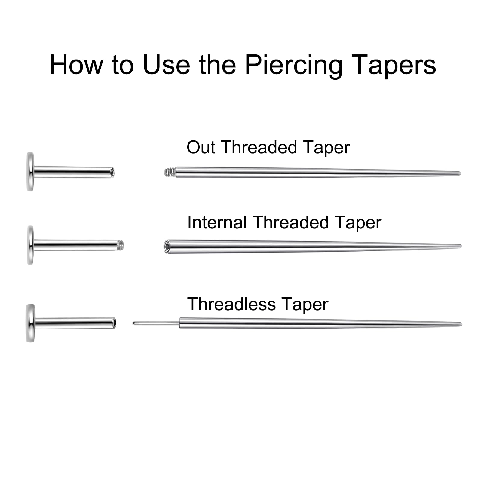 【USING】①Body Piercing Assistant Tools Assist in guiding threadless Helix,Conch,Tragus,Lobe,Rook,Daith Piercing Jewelry,Cartilage Earring through your piercing much more easily.②piercing taper insertion tool Assist in guiding threadless Nose Studs Nostril Piercing through your piercing easier③threadless insertion pin Assist in guiding Vertical Labret Lip Jewelry,Eyebrow Rings,Belly Button Rings through your piercing safer and easier