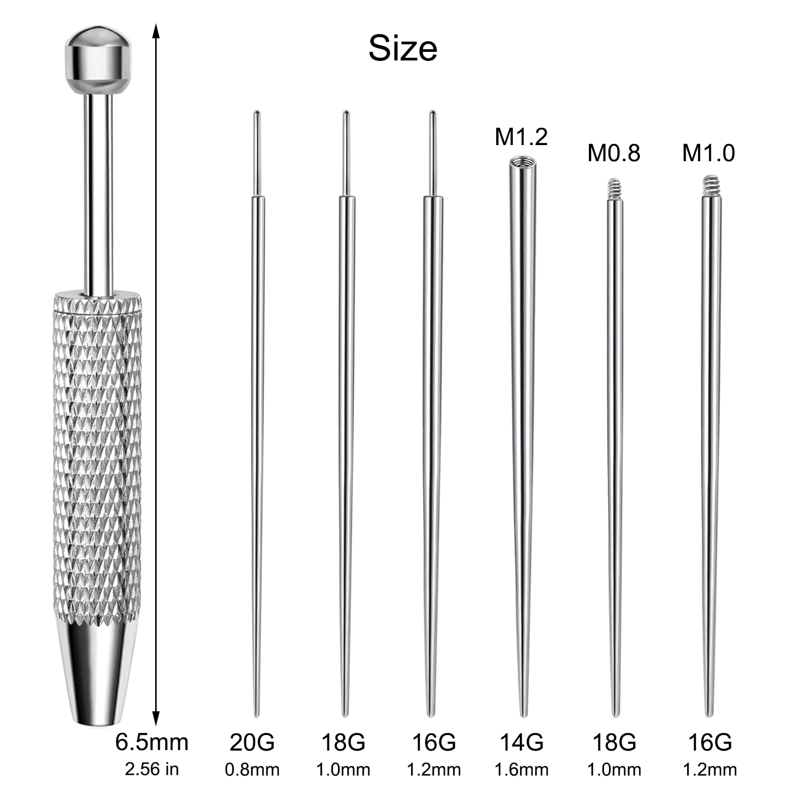 【VALUE PACK】6Pcs 16G(1.2mm) / 18G(1.0mm)/ 20G(0.8mm) Threadless Piercing Changing Tools, Curved & Straight piercing taper insertion pin 1 pcs of each