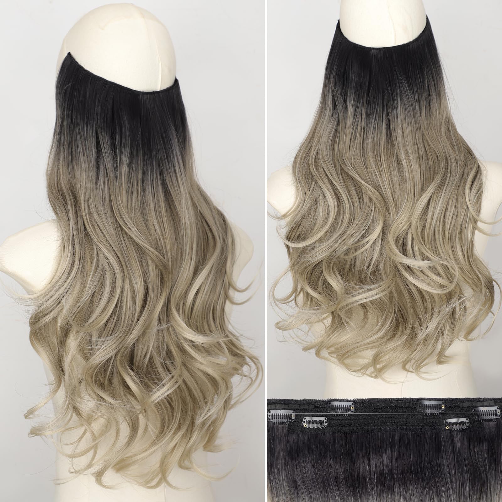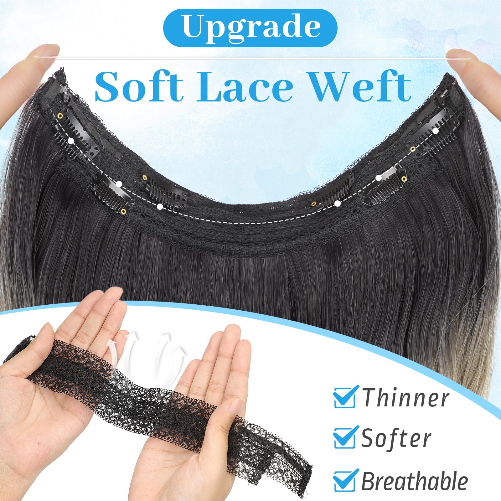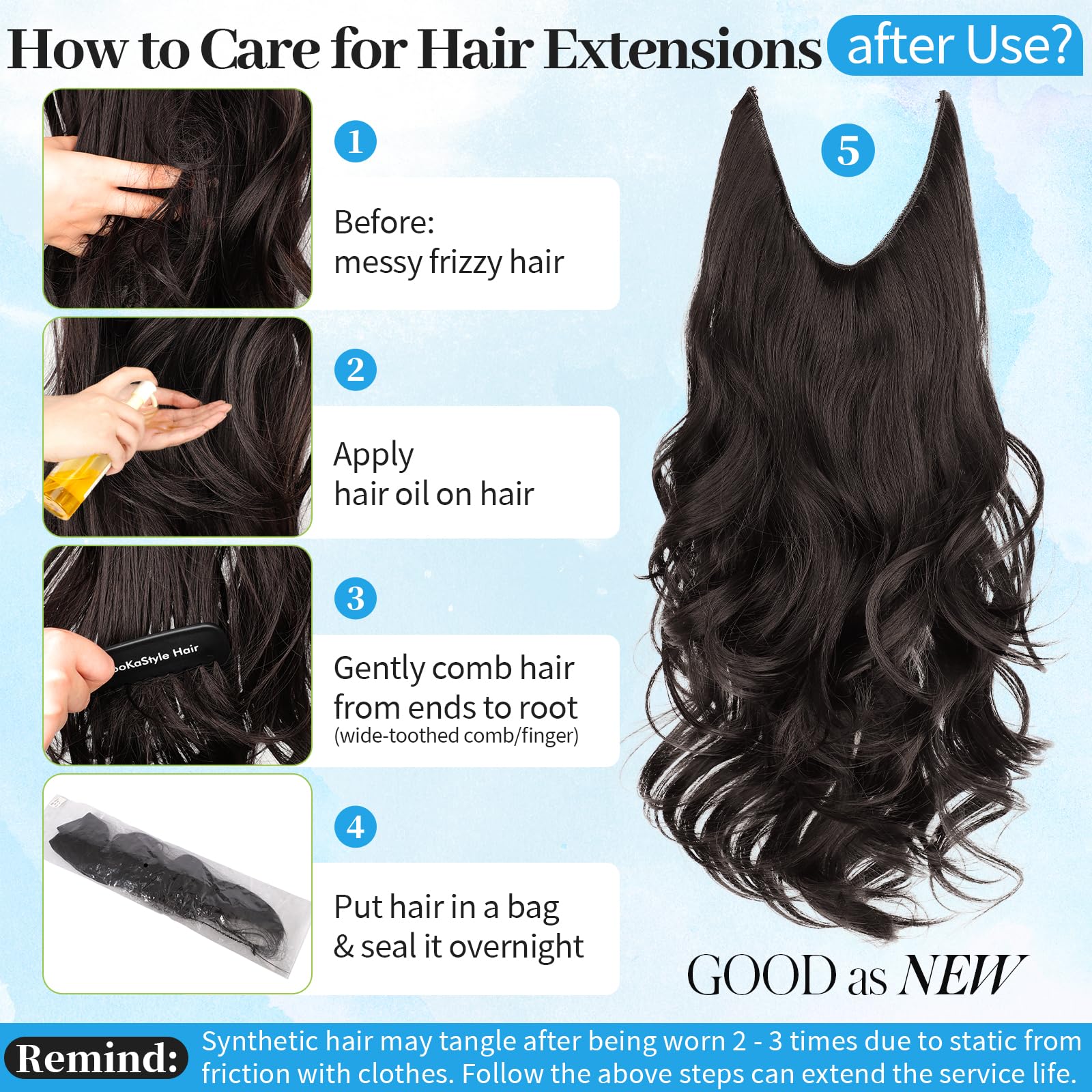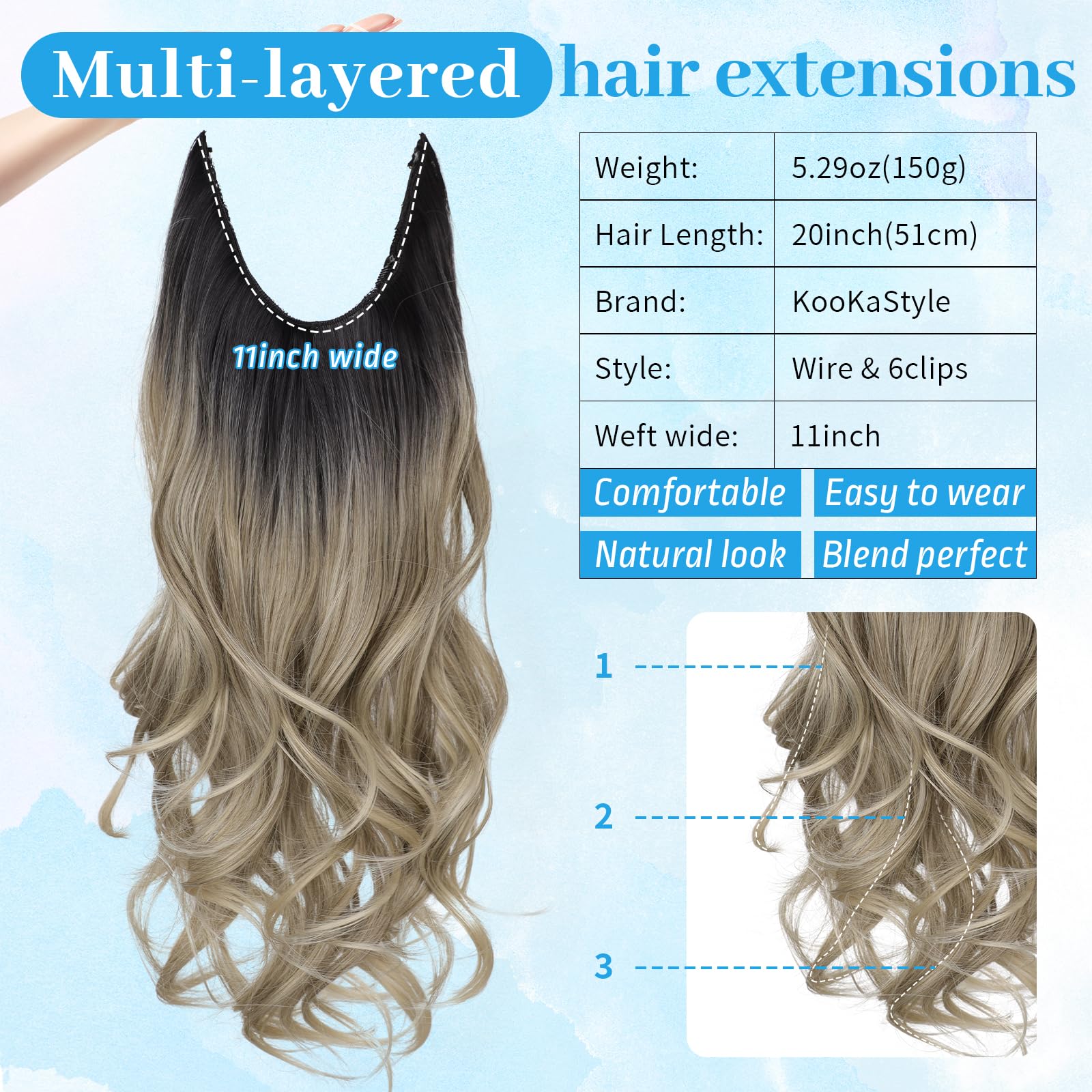 【Get Layered Hair In Seconds】 Invisible wire hair extensions is the easiest and quickest tool for adding volume and length. Anyone can do it!KooKaStyle invisible wire hair extensions with new upgrade!Thinner&softer&Breathable double weft,lighter&fluffier Synthetic heat-resisting fiber,Make it perfectly blend with our hair and create a hair salon effect at home.