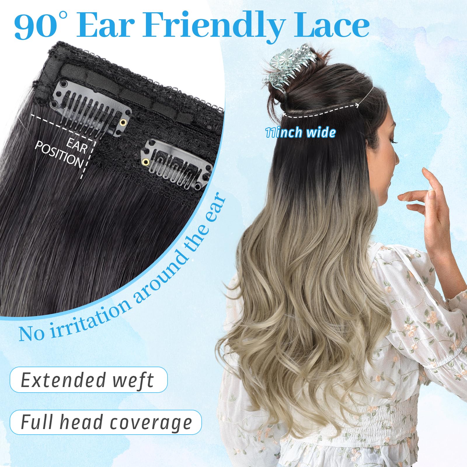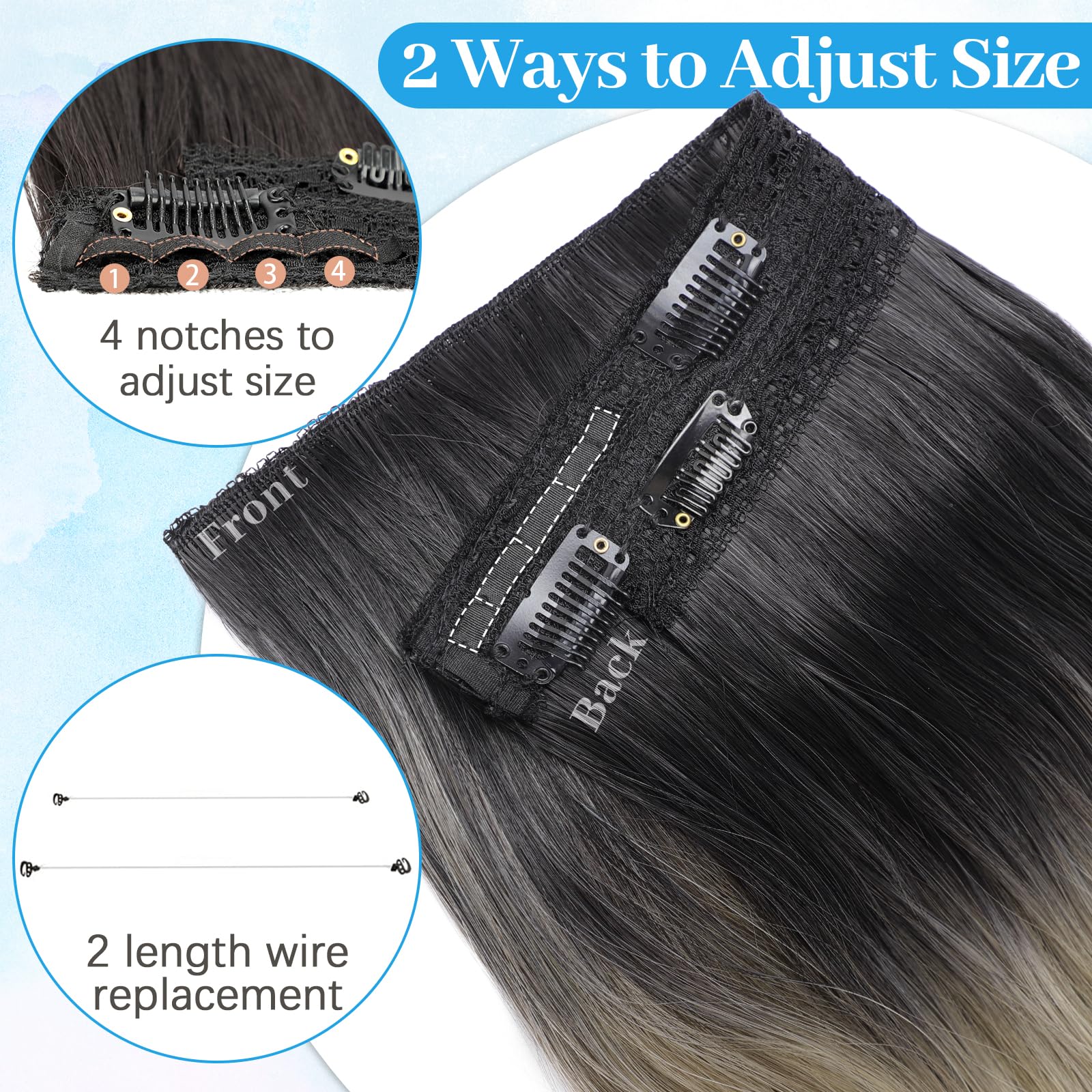 【Easy to Wear】Just 3 steps increase your hair volume quickly.Separate your hair above your ears, about 1-1.5 inches from your hairline, and leave it on top;Place the hooks in different positions to adjust the size to your head, then place the extensions with the wire in the back;Place 4 clips onto the hair for further security, then release the top of the hair;Finally, Use your own hair to hide the wire.