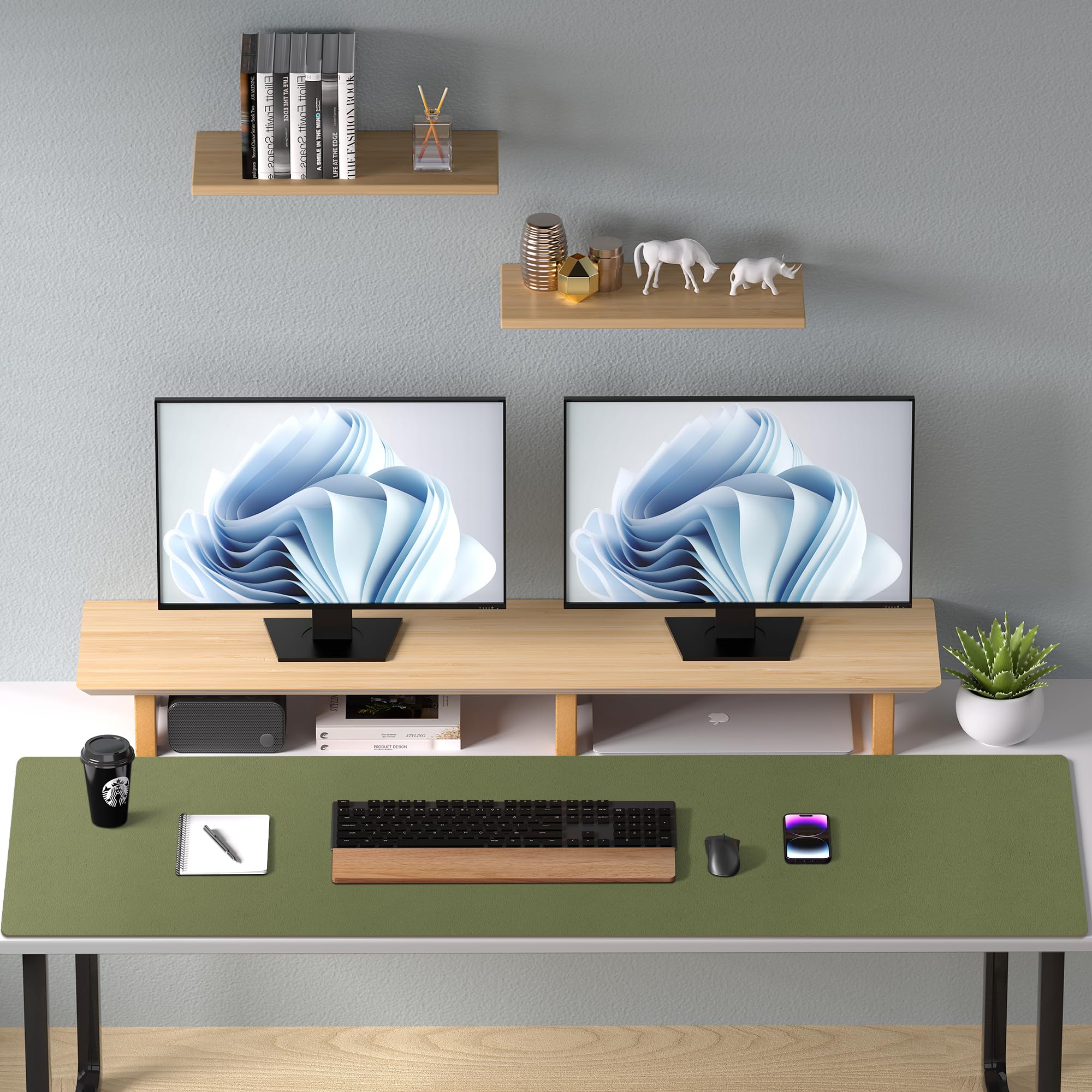 Mulifunctional Desk Pad: 48 x 17 inches Size is large enough to accommodate your laptop, mouse and keyboard. Its comfortable and smooth surface can be work as a mouse pad, desk mat, desk blotters and writing pad