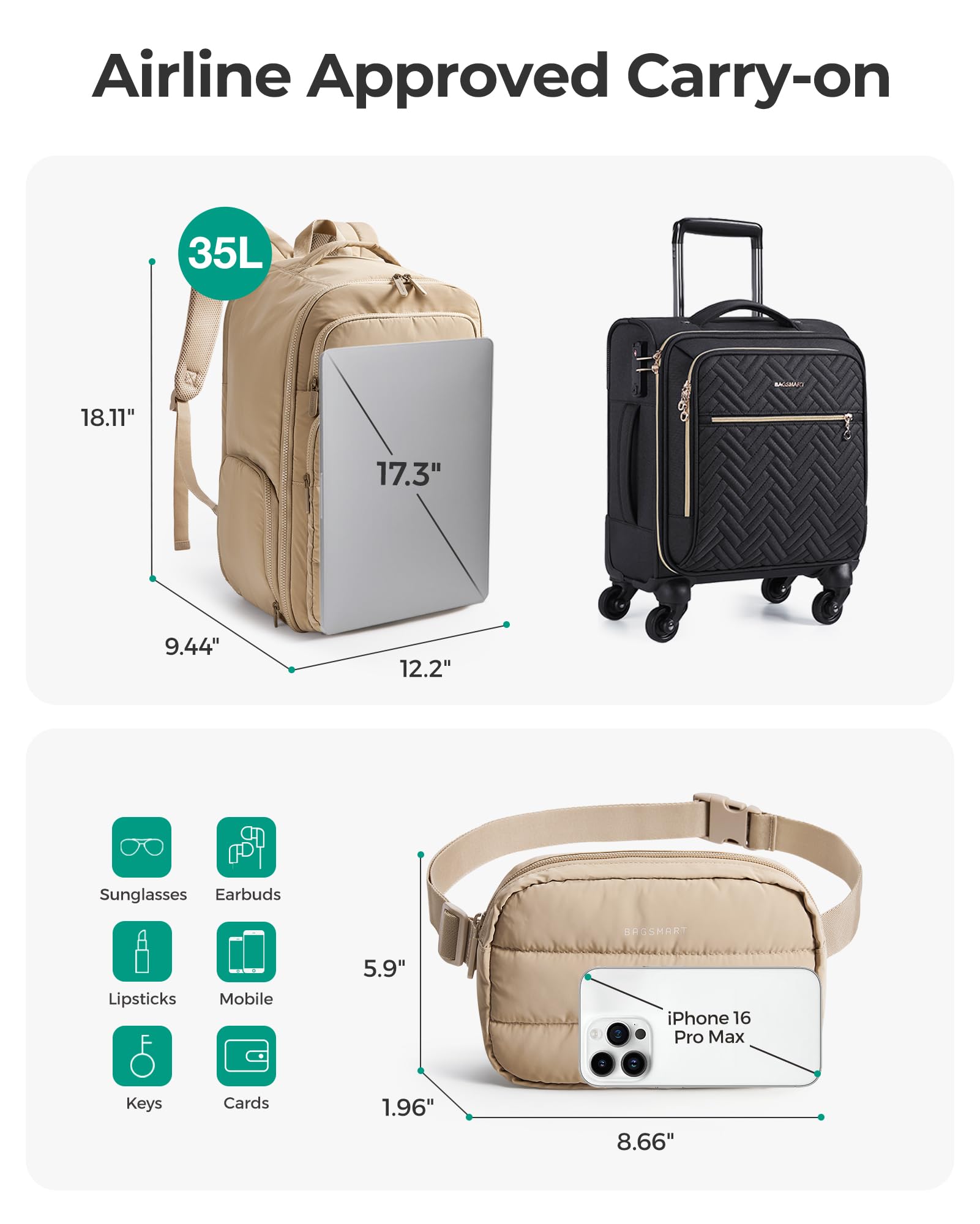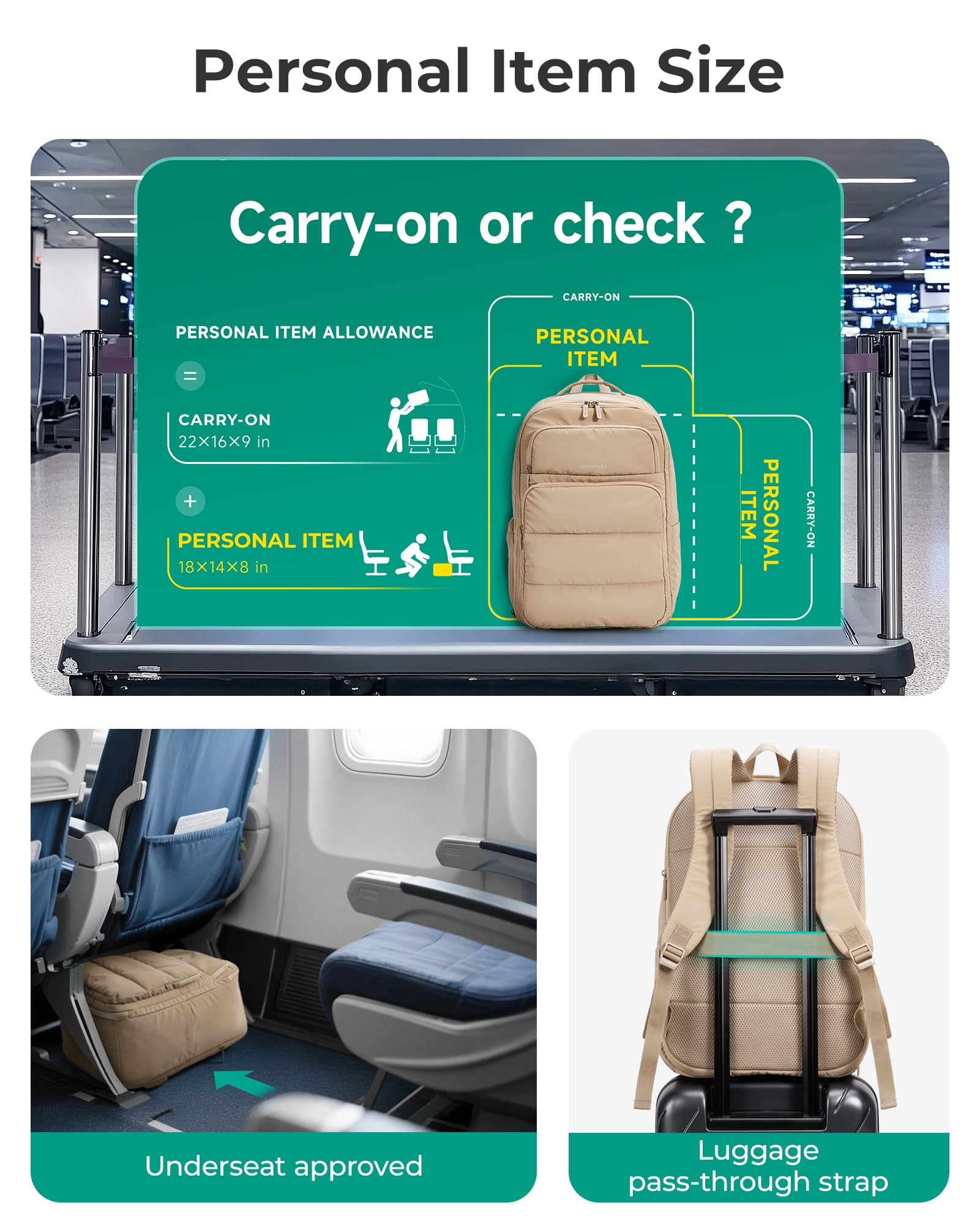 Effortless Airport Experience: This 35L personal-item backpack breezes through airline regulations. Its 180° full-open design grants instant access at security checks. Securely strap it to your rolling luggage and travel smarter, not harder.