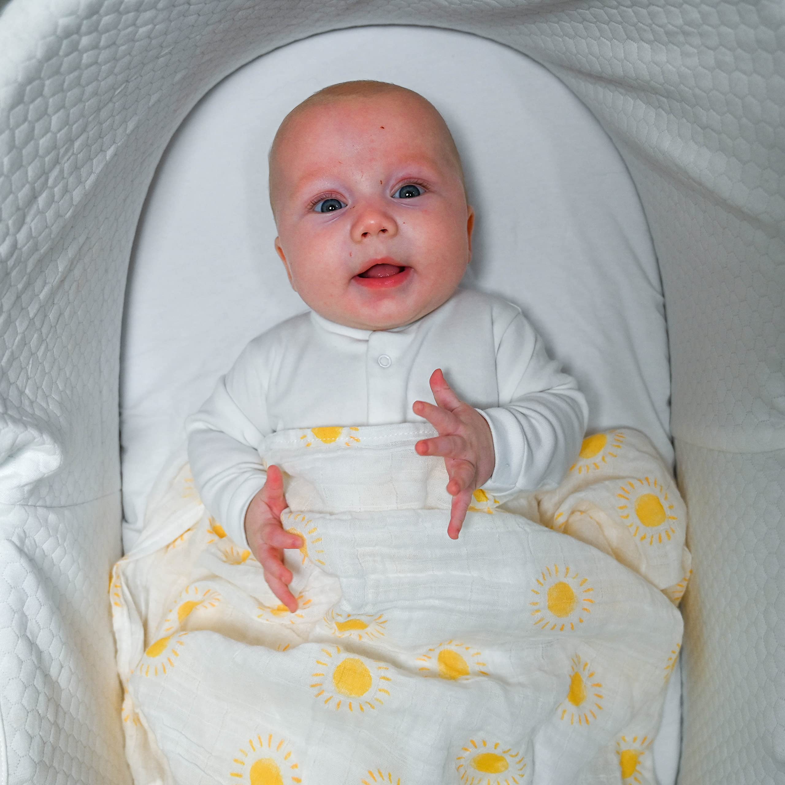 LollyBanks Muslin Swaddle Blankets for Boys and Girls, 100% Cotton 47 x 47 Inches Soft Swaddles for Newborns, Breathable and Lightweight Baby Blanket, Baby Essentials, Registry (Sun and Cloud 3 Pack)