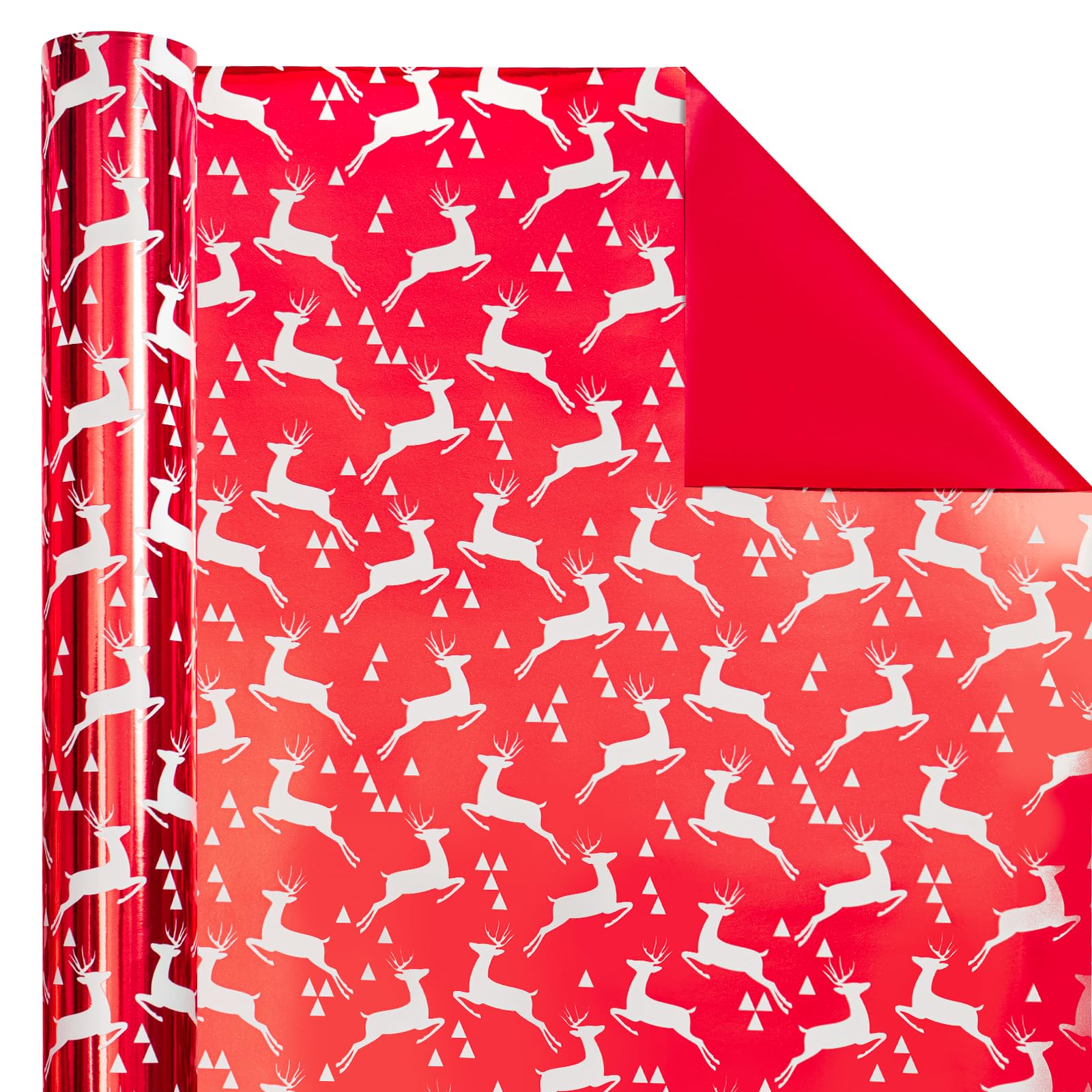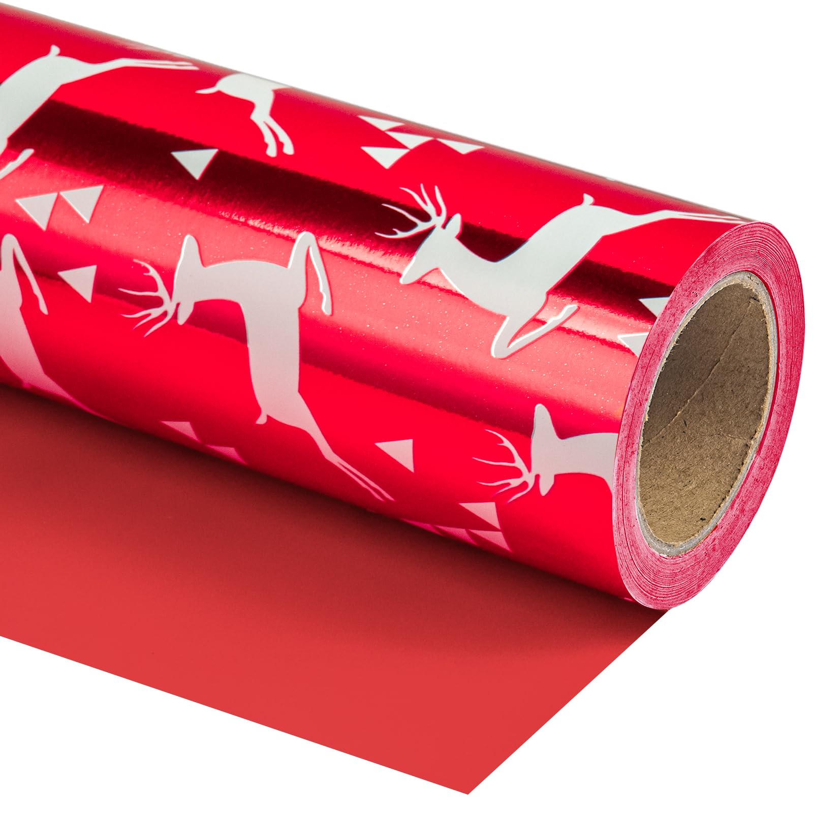 Reversible Design: Red Reindeer printed on one side, solid red printed on the reverse. Two different designs make unique and varied gift presentations easy.