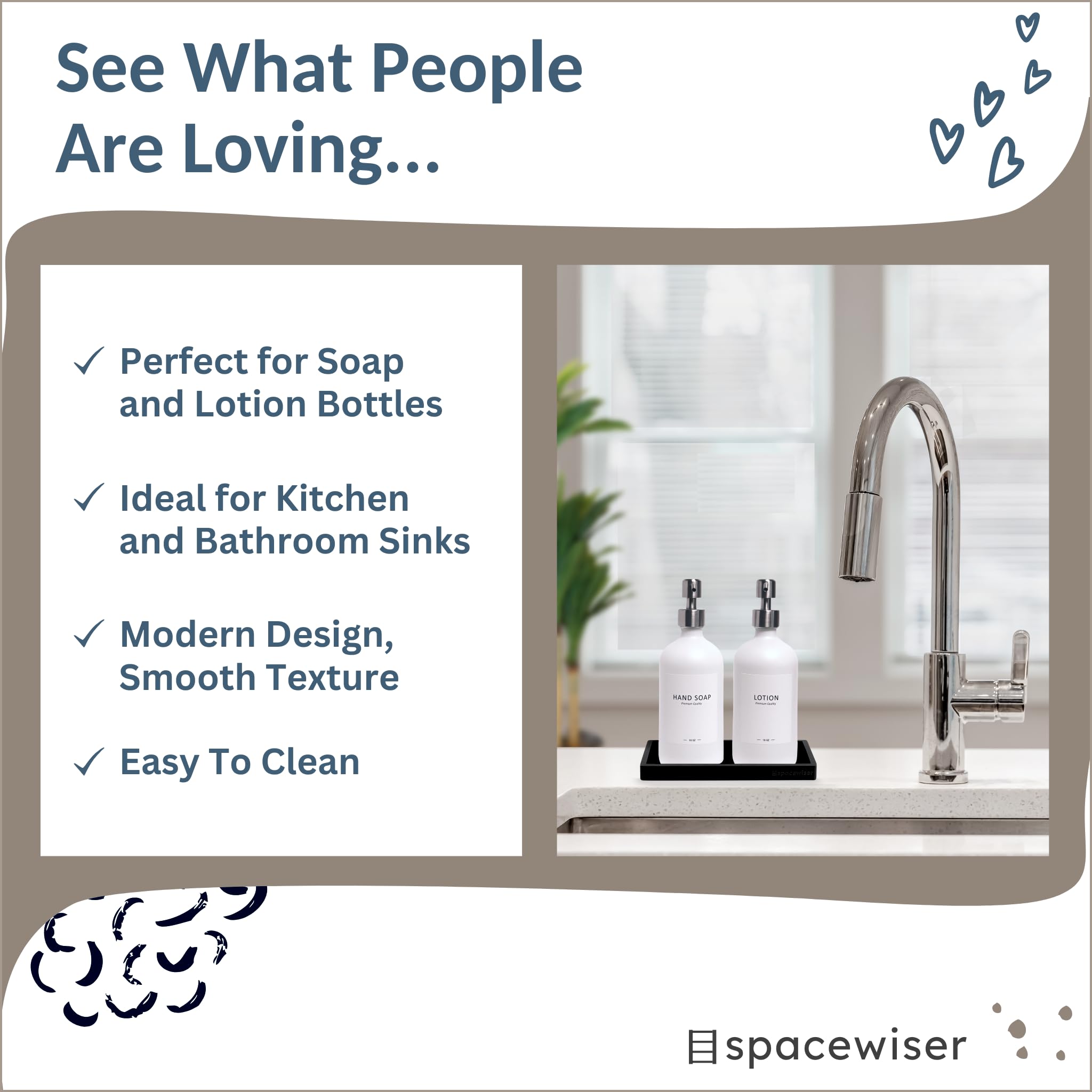 Useful and Versatile - These black rectangle trays are an ideal black vanity tray or black soap dispenser tray. They’ the perfect black tray for bathroom areas, sponge holder for kitchen sink areas, and sink tray for bathrooms.