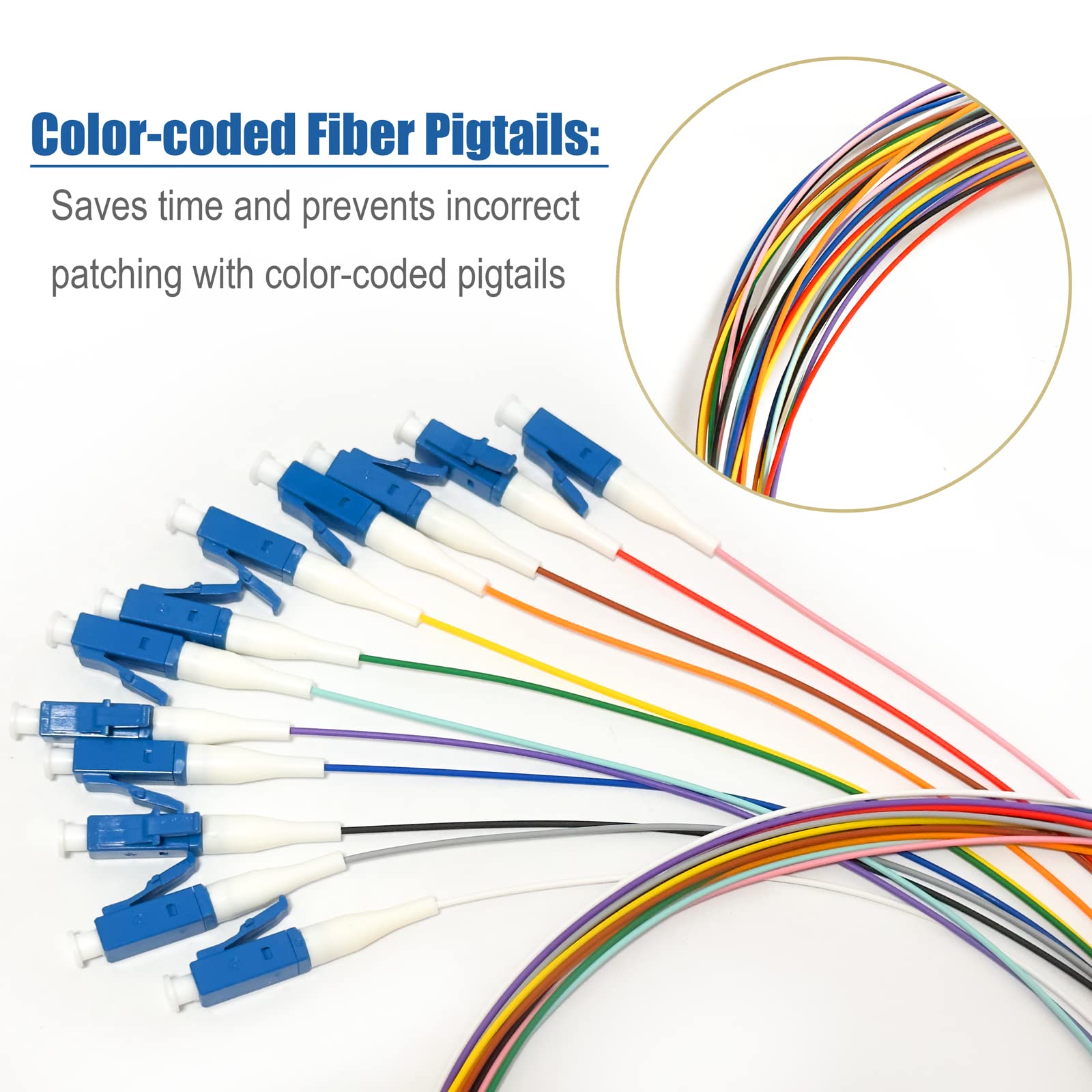 Color-coded Fiber Pigtails: Individually colored to easily match color-coded Fiber Cable that will be spliced. Saves time and prevents incorrect patching with color-coded pigtails