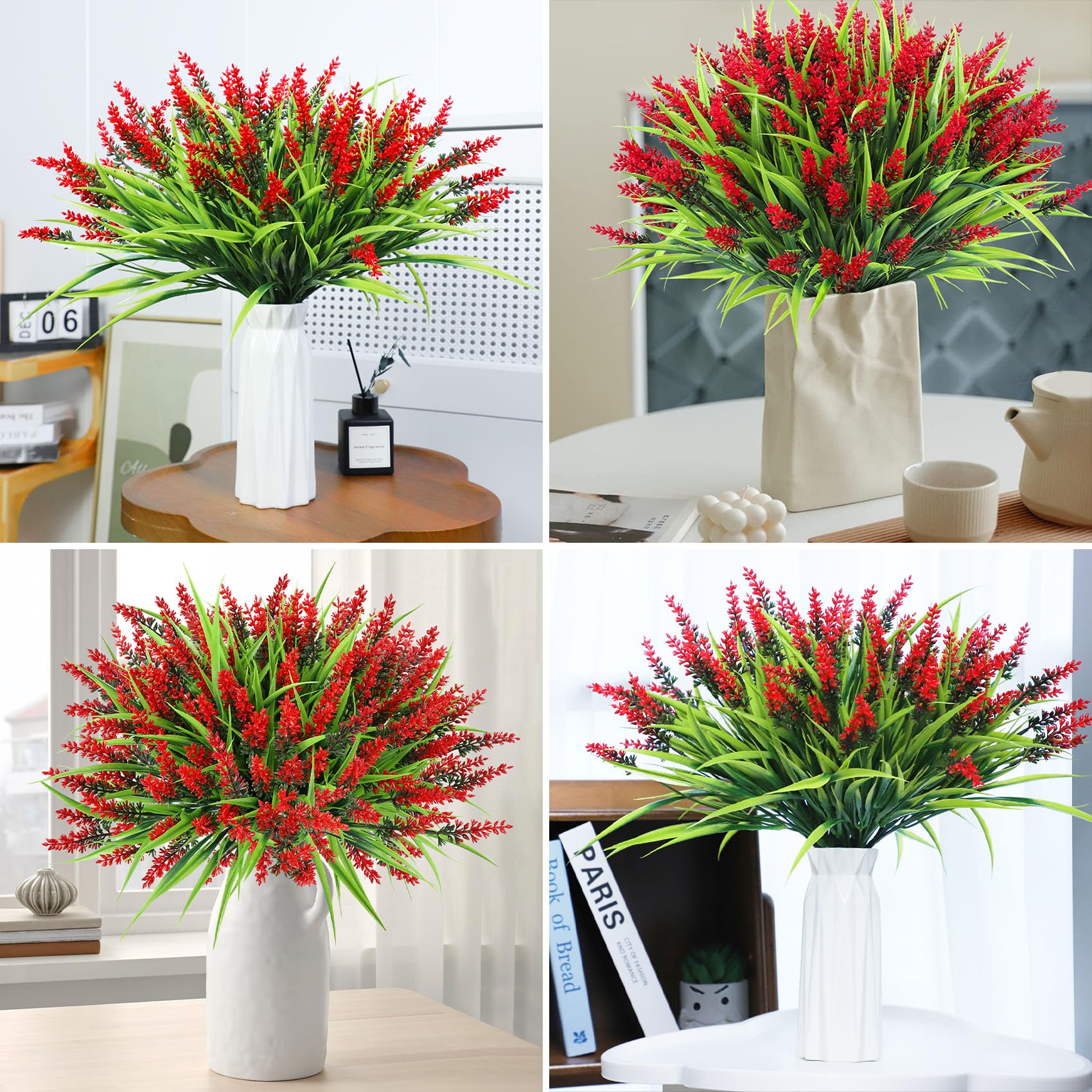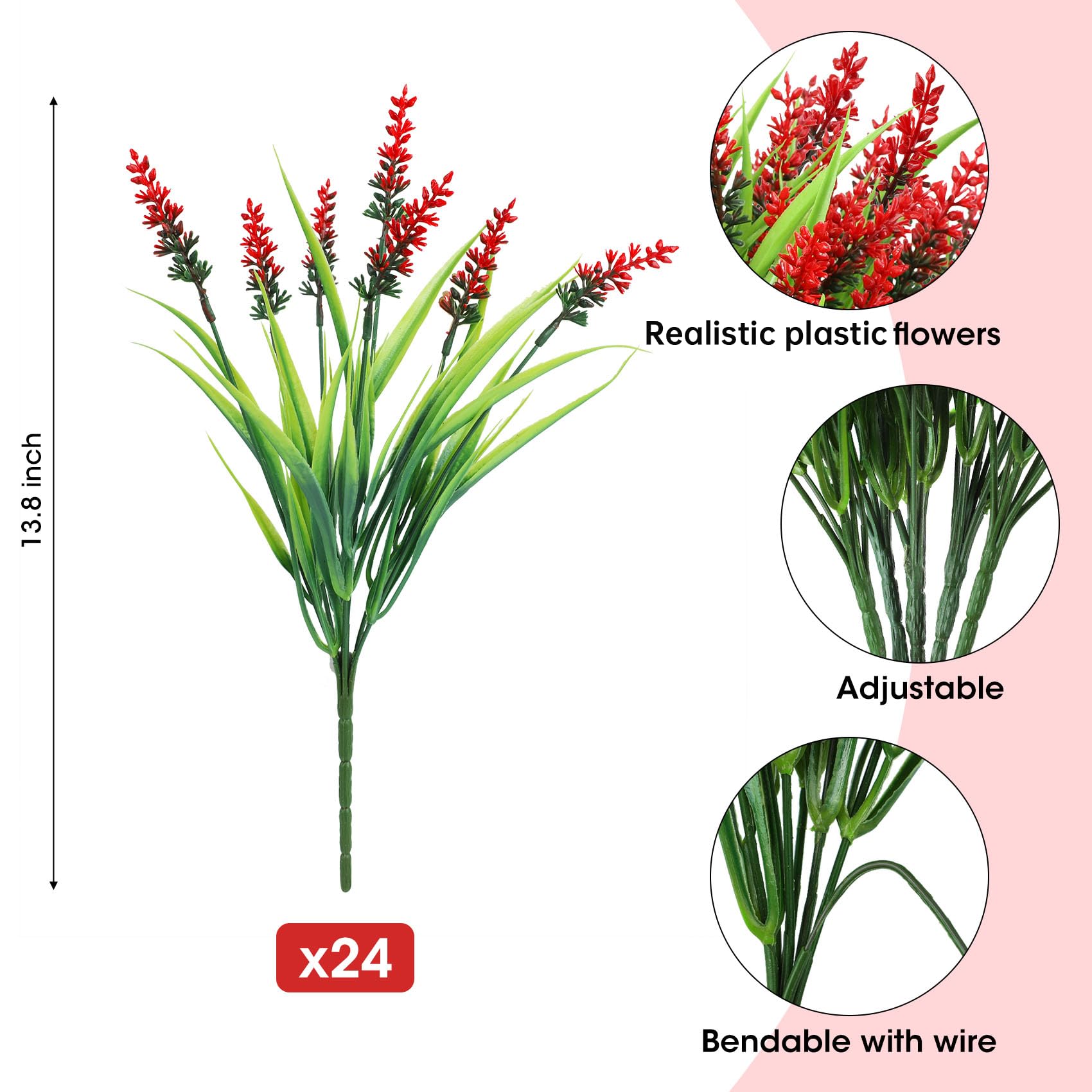Abundant Package: 24 bundles of beautiful red artificial lavender flowers will bring you fresh natural beauty; The rich quantity and fresh color of artificial plants outdoor support you to freely DIY your home decoration