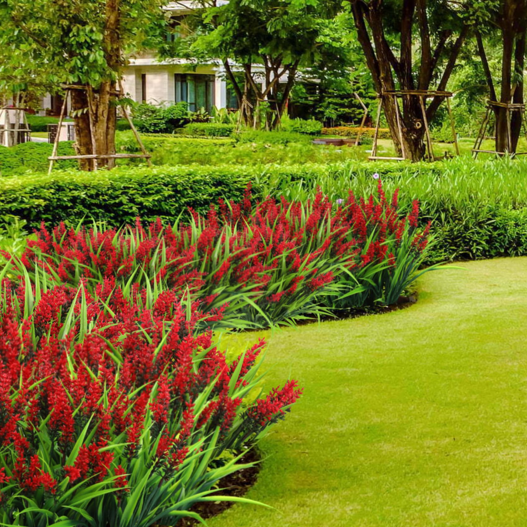 Realistic Appearance: The gradient lavender flowers colors and green grass created through exquisite craftsmanship complement each other harmoniously; The artificial plants outdoor can add natural beauty to your garden