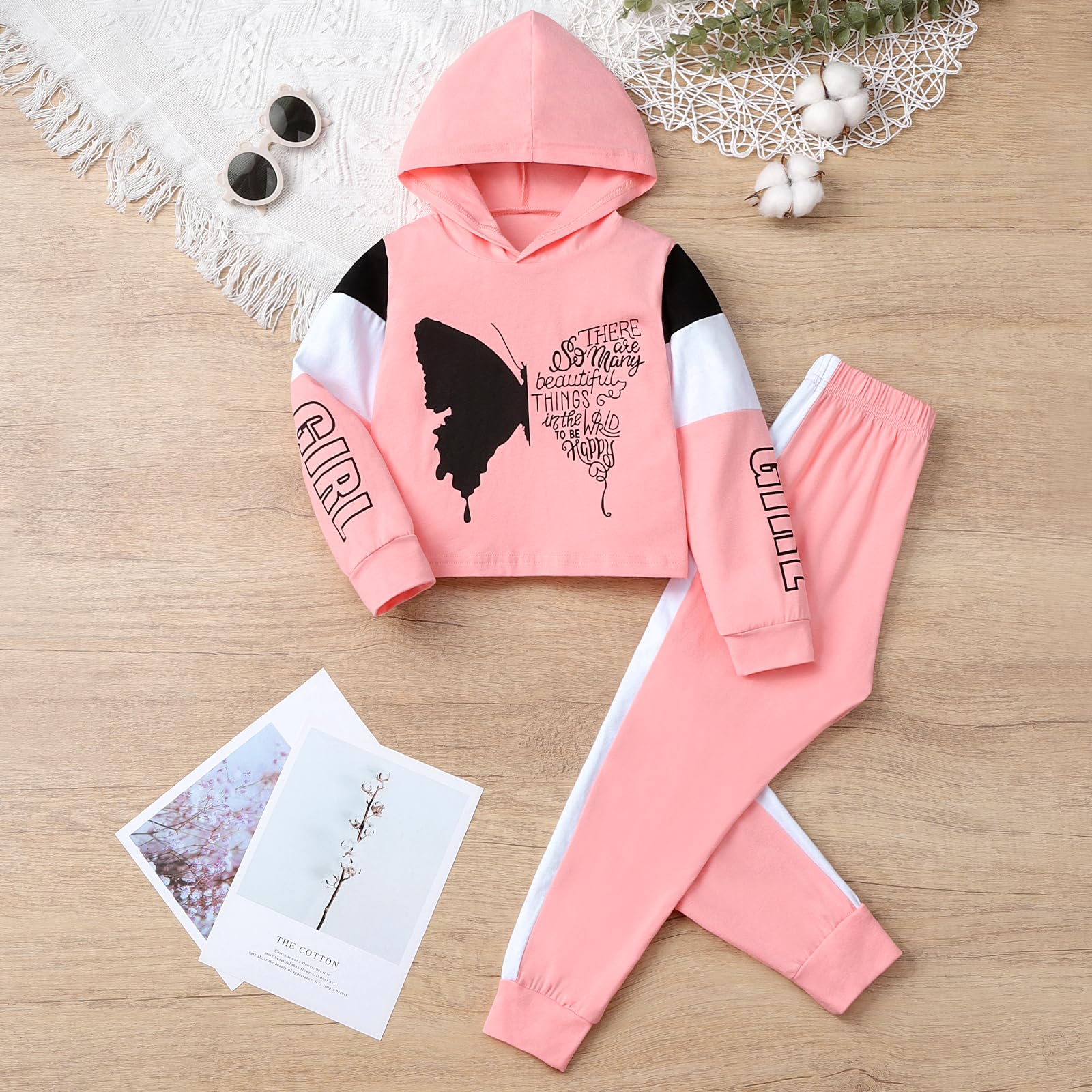 Cute Girls Fall Outfits: Toddler girl fall winter outfits, butterfly print Hoodie long sleeve sweatshirt and pants, make your little girls look very cute, and will be get lots of compliments.