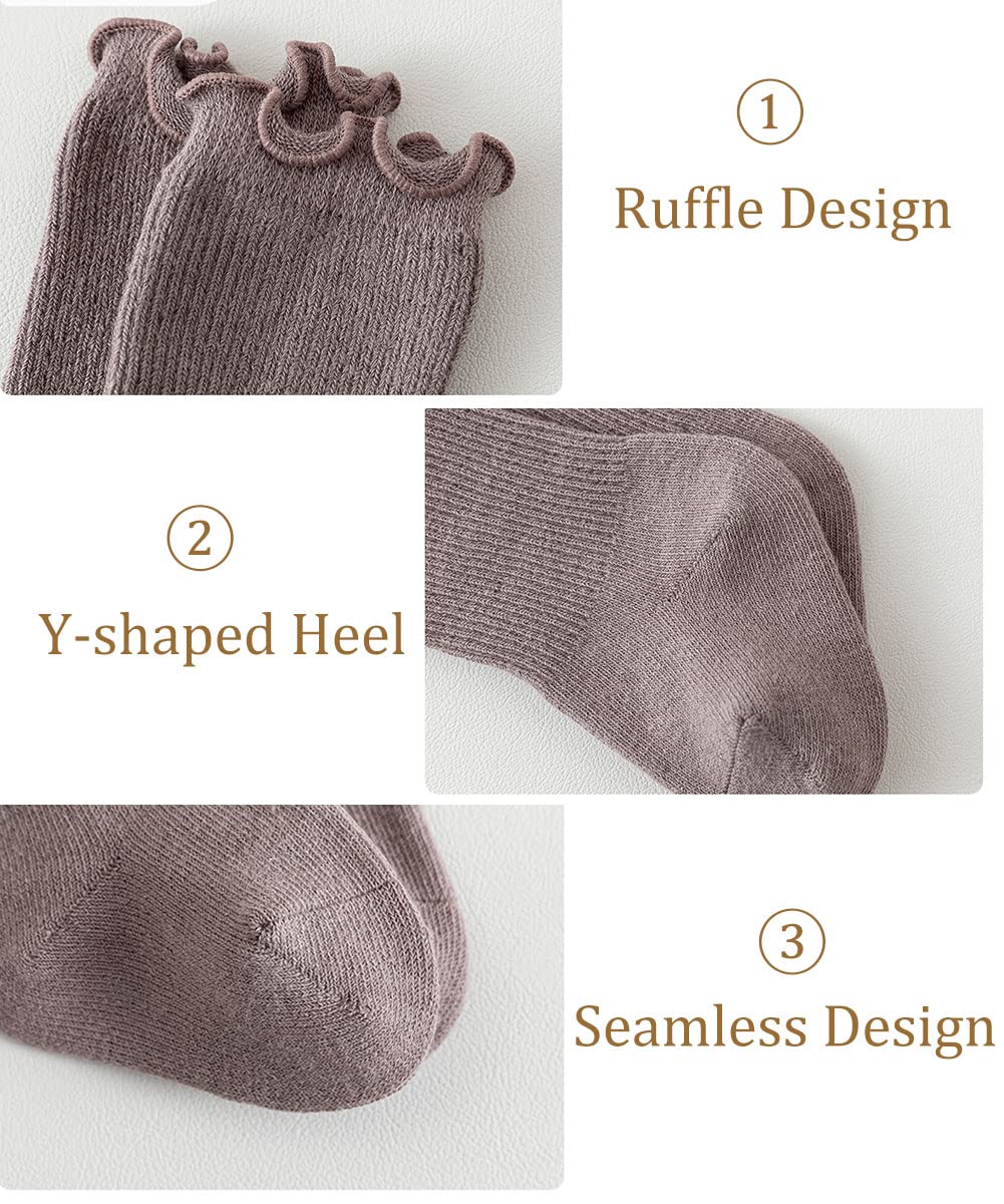 【Cute Design】: Cute baby girls socks designed with classic solid ruffled, stretch cotton fabric, breathable, nice for your child to wear in spring, winter, and fall