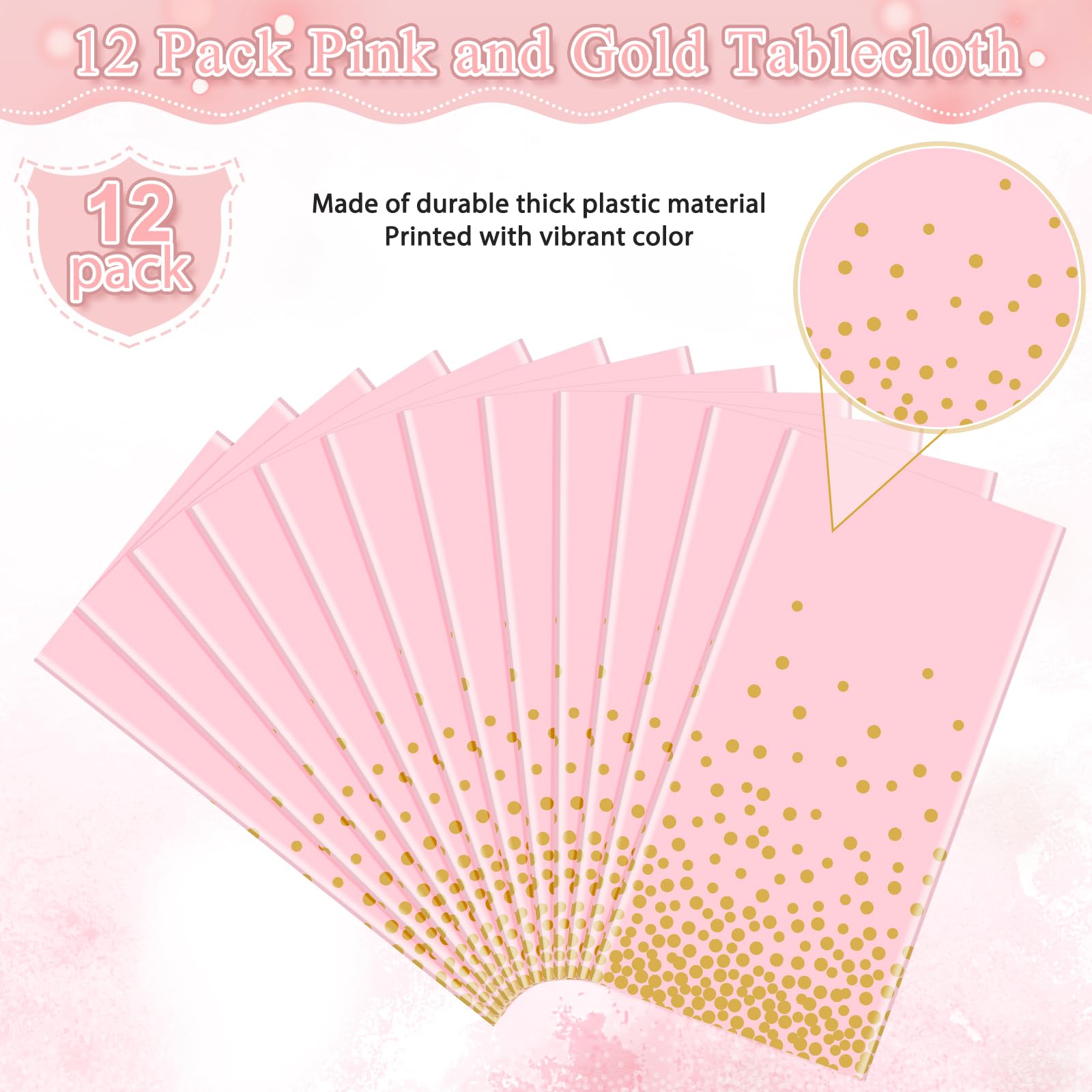 Package Includes: You will receive 12 pink and gold dot tablecloths, each pink tablecloth measures approx 54 x 108 inches, fit any rectangle table up to 8 feet in length, suitable for party decoration.