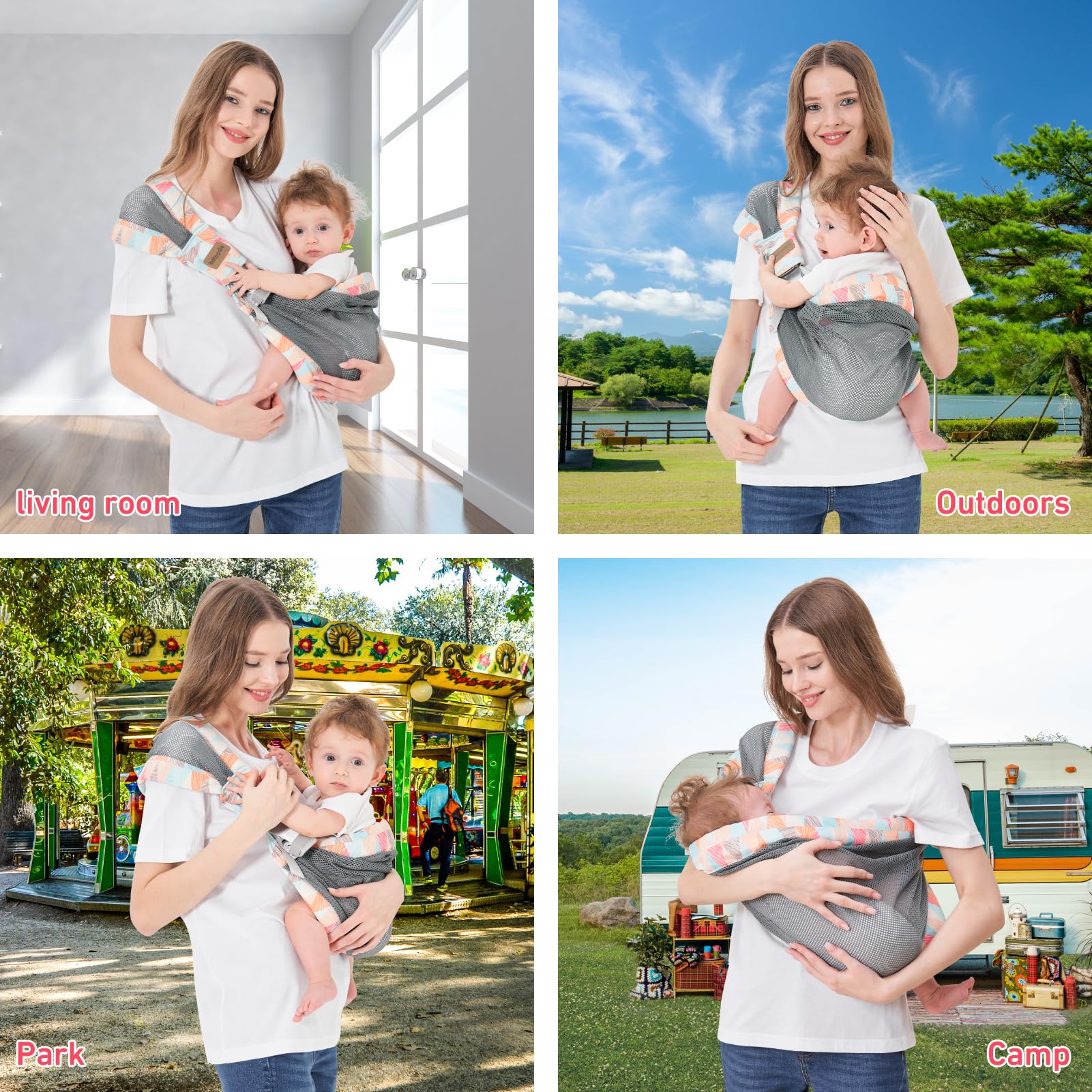 Breathable Mesh and Soft Materials for Four Seasons: Our summer baby wraps carrier uses ultra-breathable mesh and skin-friendly fabric, perfect as a mesh baby carrier for summer. The breathable baby carrier for summer integrates airflow tech to keep baby and parents cool. This breathable baby carrier for summer mesh innovation ensures year-round comfort: cool in summer, lightweight in winter. Newborn-friendly sling carrier with reinforced stitching lasts multiple seasons. Combining function and style, it’s essential baby stuff for outdoor adventures