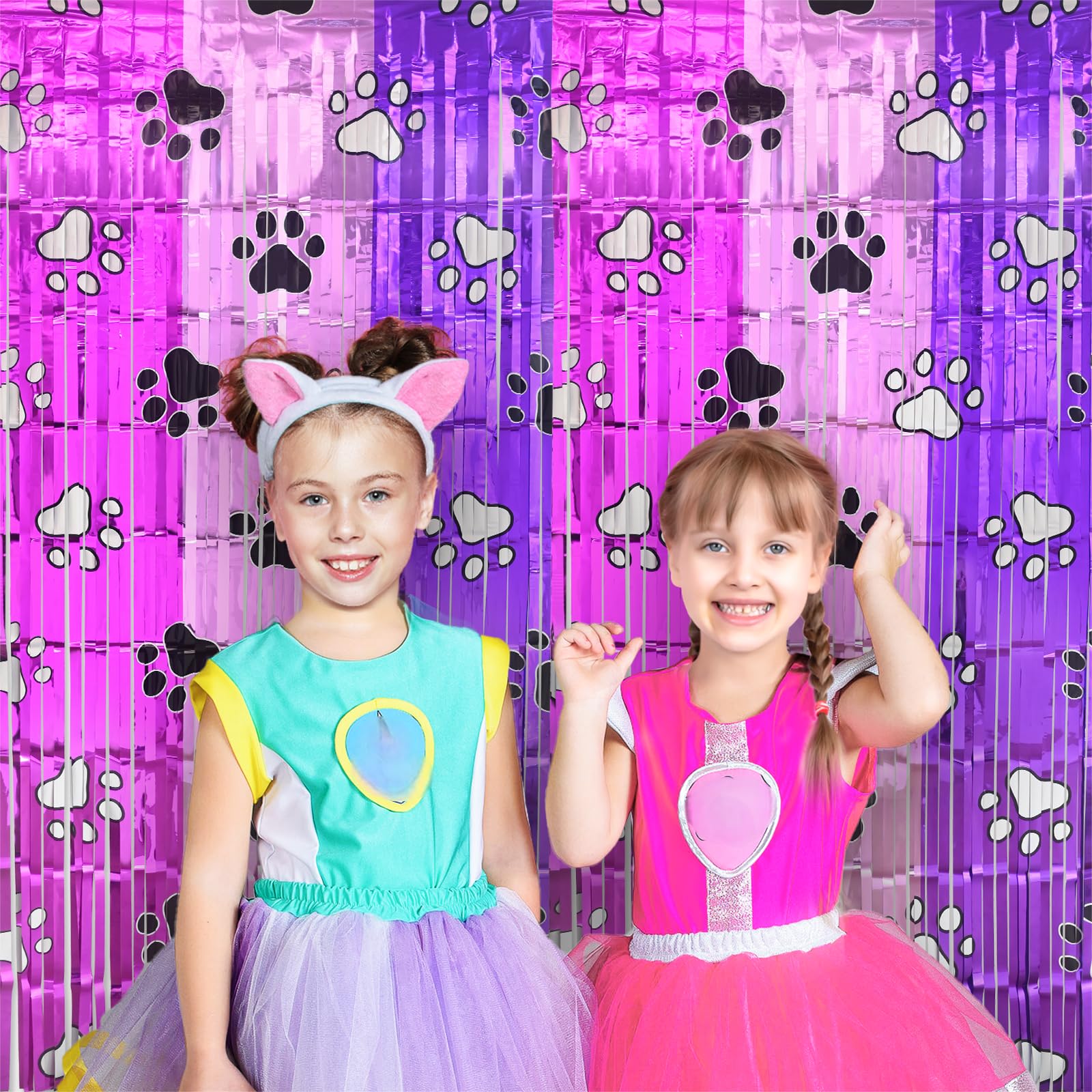 πΎγ PAW BIRTHDAY DECORATIONS γ: 2 packs of girl paw pattern tinsel foil fringe curtains, extra large size (width x drop) 3.3 x 6.6 ft each, perfect for girl paw birthday party photo backdrop.