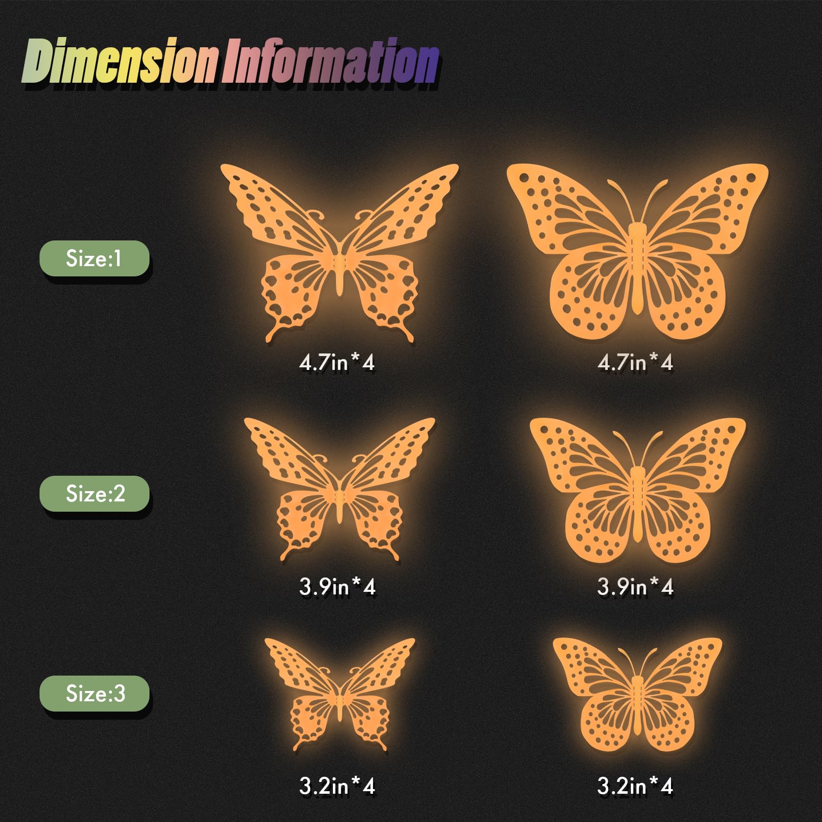 【Package Included】24 Pcs Glowing Butterflies: 12 pcs Style 1, 12 pcs Style 2, each style has 3 sizes(3", 4", 5"). Coming with 24 Pcs double sided adhesive dots.