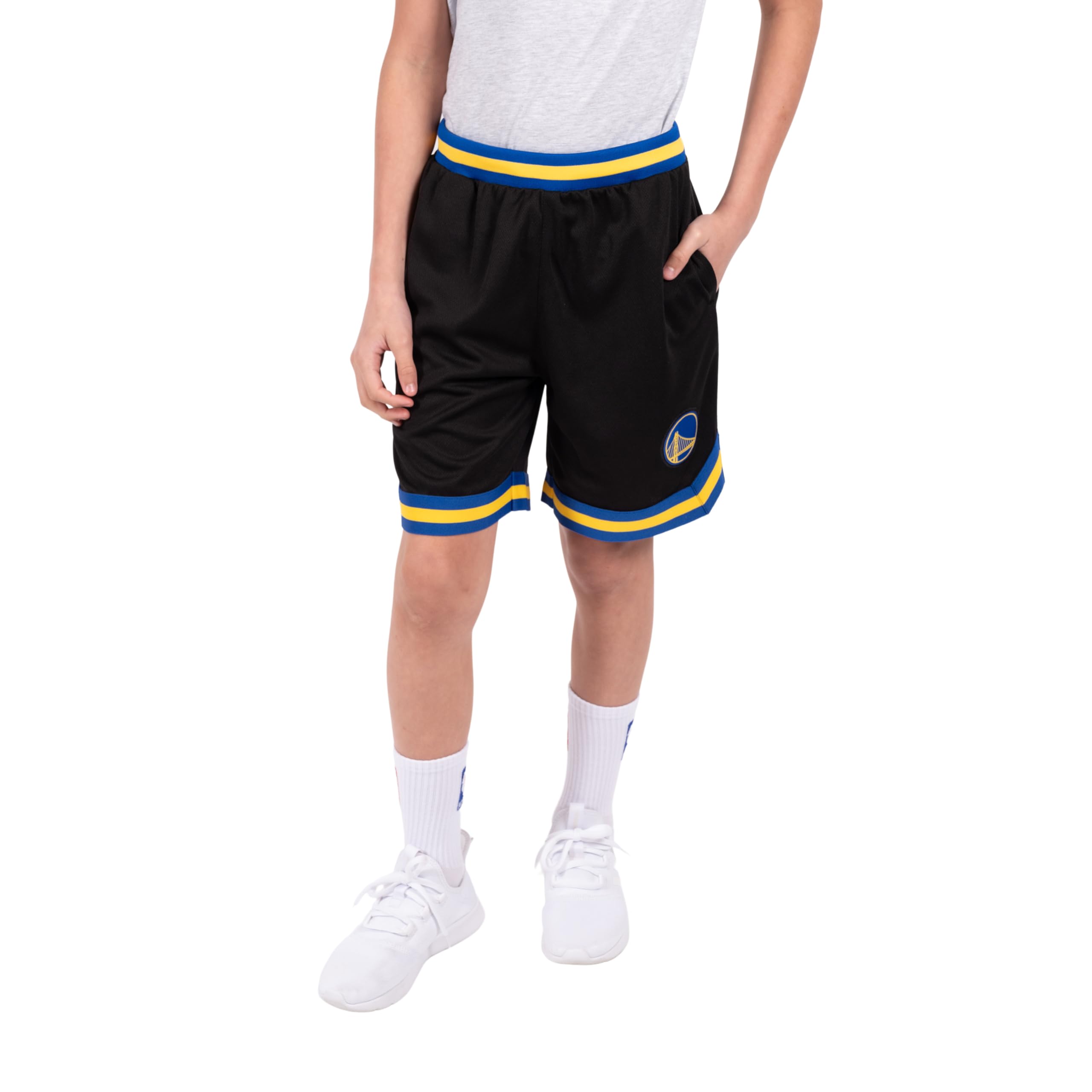 FUNCTIONAL AND STYLISH DESIGN: a black body create bold color contrasts with NBA team logos. Useful additions include two side pockets and a loose fit for unrestricted movement.