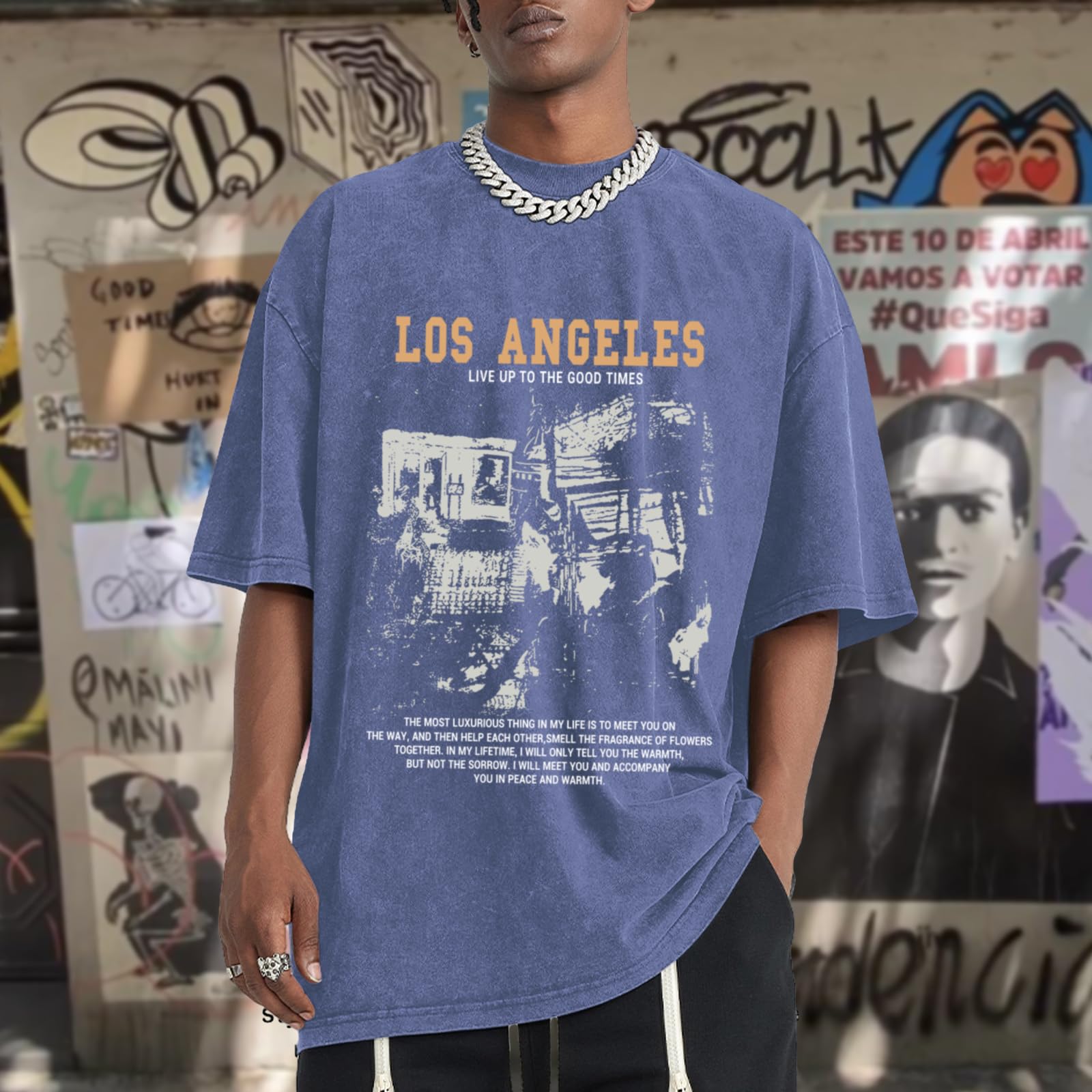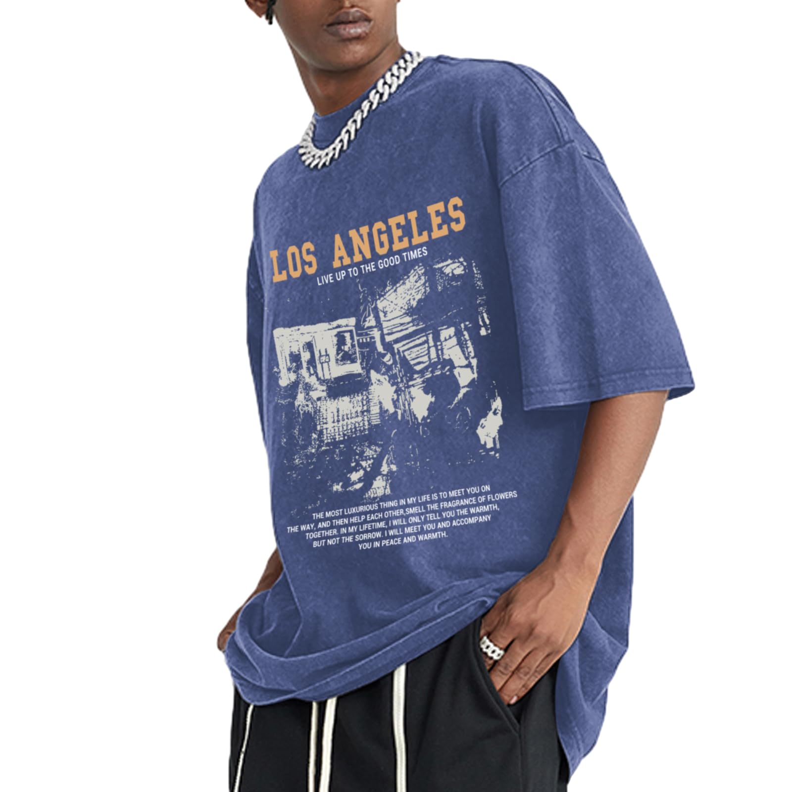 Stylish Versatility: Embrace the vintage vibe with our los angeles short sleeve shirt, designed to be fashion-forward yet classic. These baggy shirts elevate any outfit, suitable for pairing with shorts, jeans, or sweatpants
