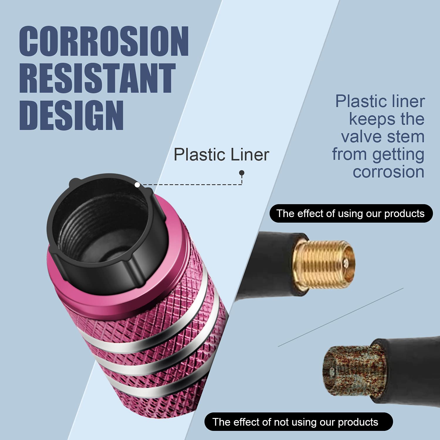 ANTI-SEIZE DESIGN: The tire valve stem caps come with metal shell and plastic insert, which will prevent the valve stem from corrosion, esspecially in wet/cold area.