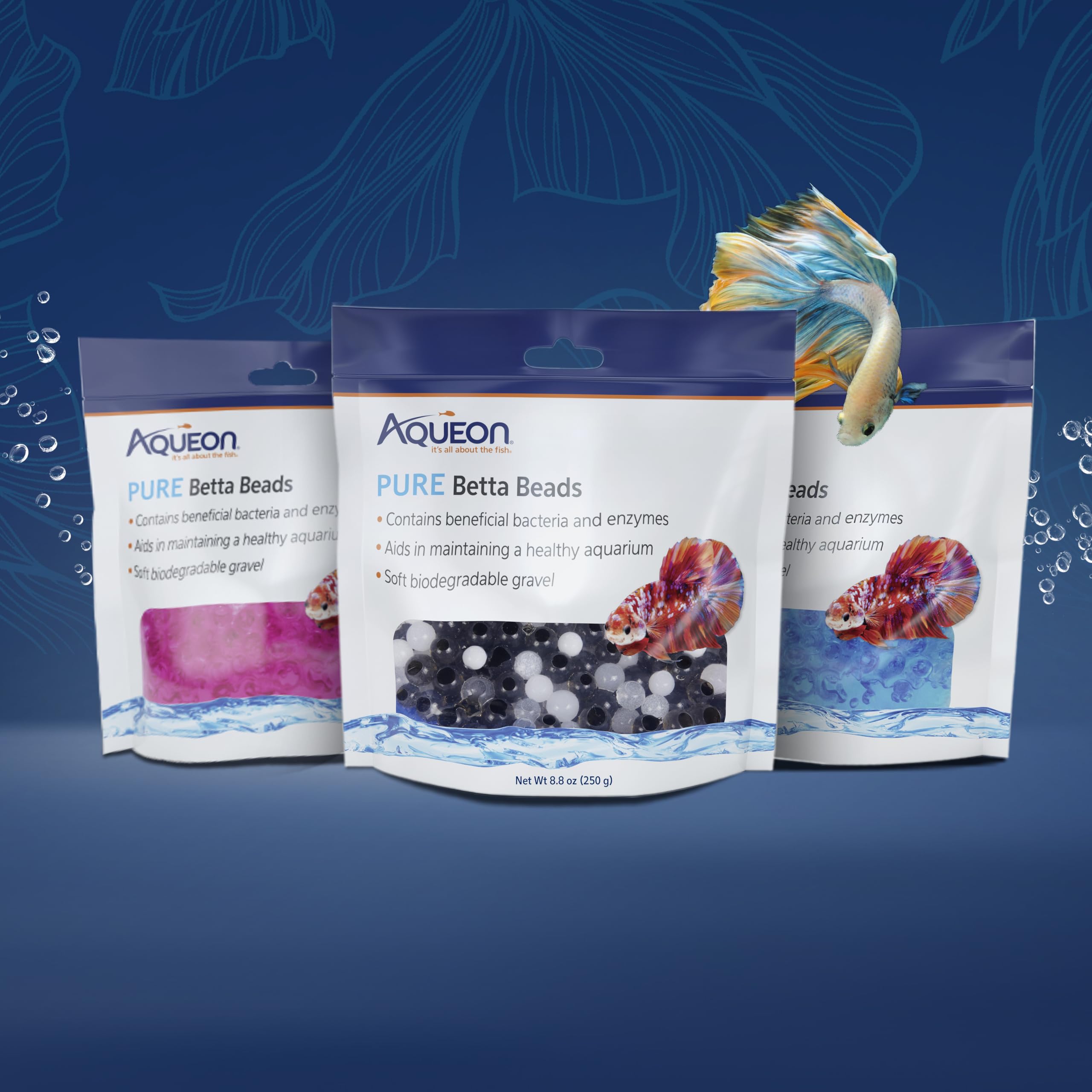 CREATES A FUN, INTERACTIVE ENVIRONMENT where your betta can play; Aqueon PURE Betta Beads product feature a soft texture that encourages the natural foraging behavior of bettas for mental stimulation