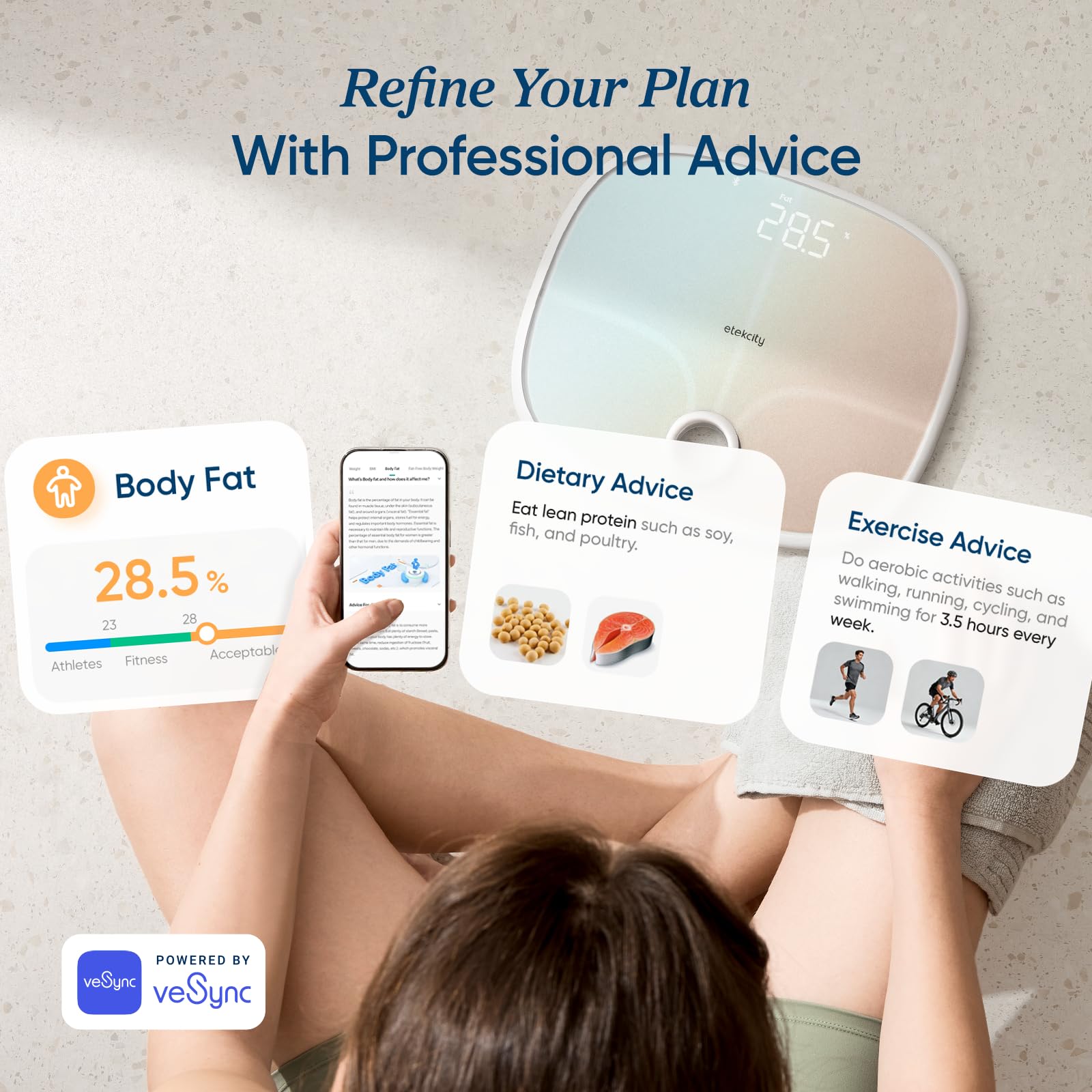 ๐๐ฐ๐ฐ๐ฒ๐๐ ๐ฃ๐ฟ๐ผ๐ณ๐ฒ๐๐๐ถ๐ผ๐ป๐ฎ๐น ๐๐ฑ๐๐ถ๐ฐ๐ฒ: Understand what each biometric means for you and get free, personalized diet and workout advice from the VeSync app. Progress starts today