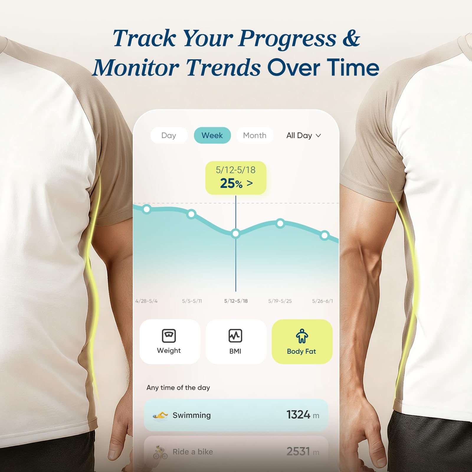 ๐ ๐ผ๐ป๐ถ๐๐ผ๐ฟ ๐ฌ๐ผ๐๐ฟ ๐ฃ๐ฟ๐ผ๐ด๐ฟ๐ฒ๐๐: Track trends for 13 biometrics across daily, weekly, and monthly graphs on the VeSync app. See how your body transforms over time, and know when to adjust your long-term plan