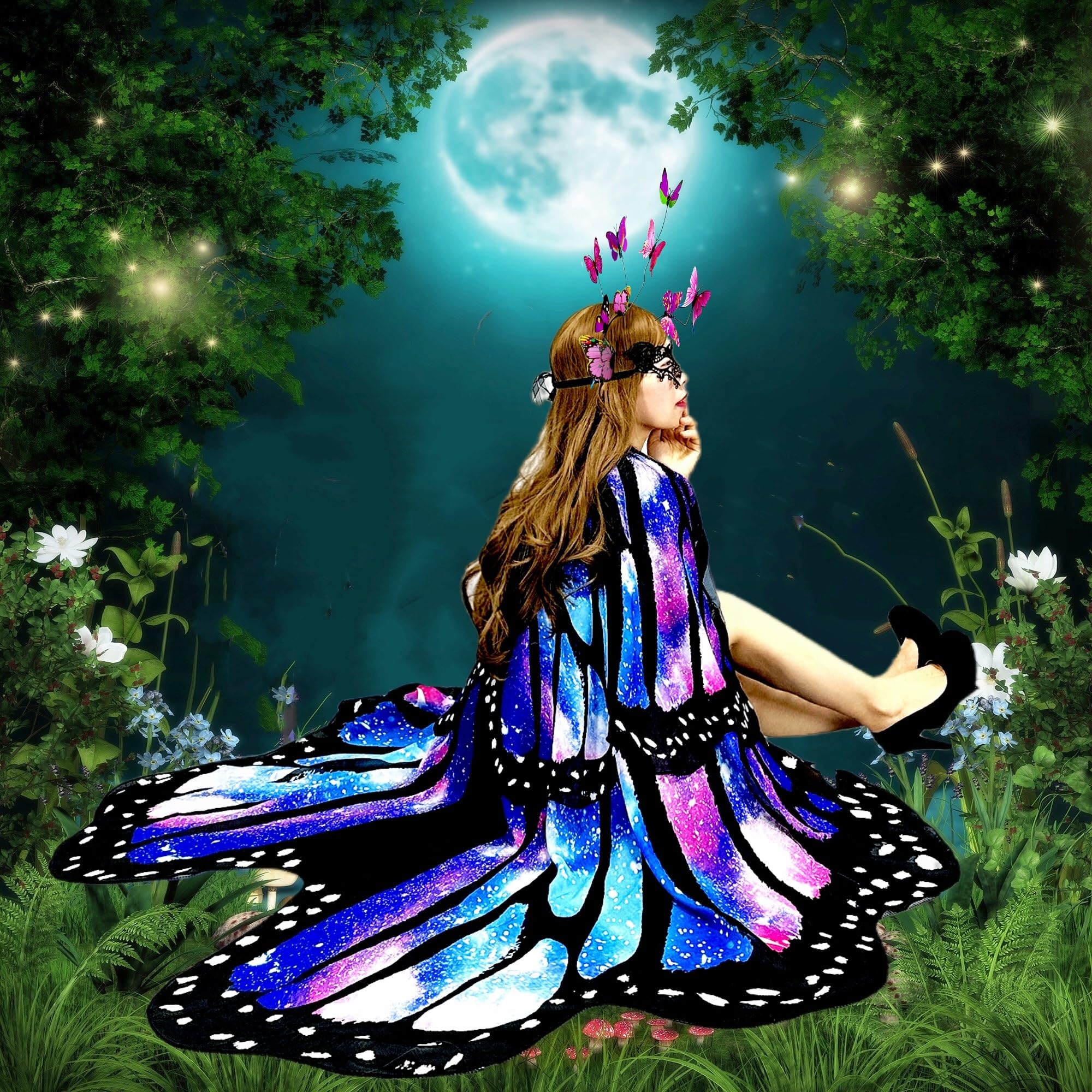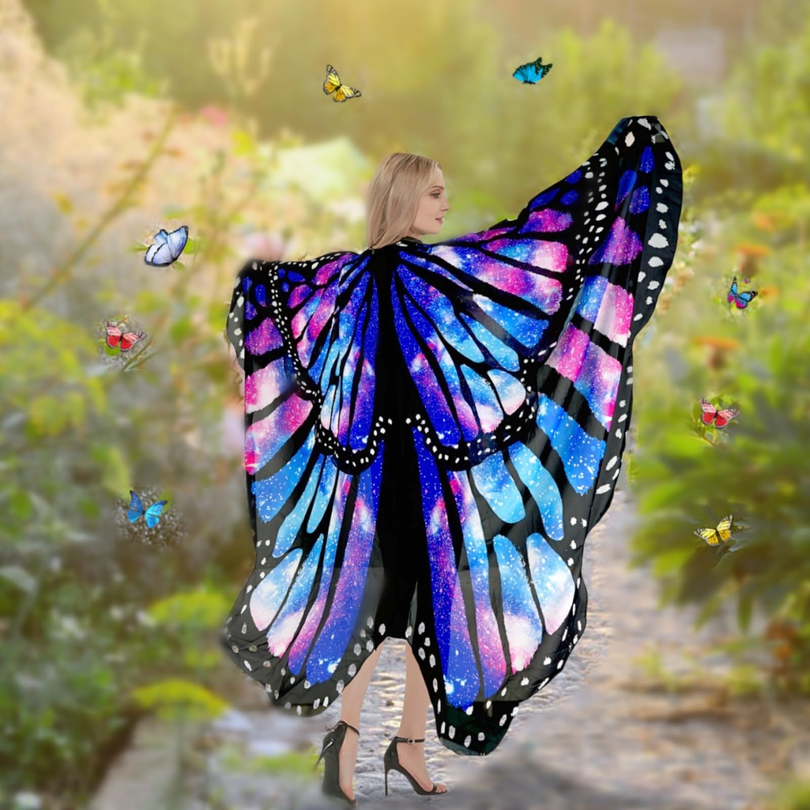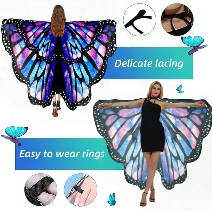 Halloween Women Costume Butterfly Moth Wings Butterfly Cape Shawl Fairy Lady Nymph Pixie Costume Accessories. If you are looking for a fun and easy halloween butterfly wings costume, This two layer cape shawl butterfly costume for women will be right up your alley.