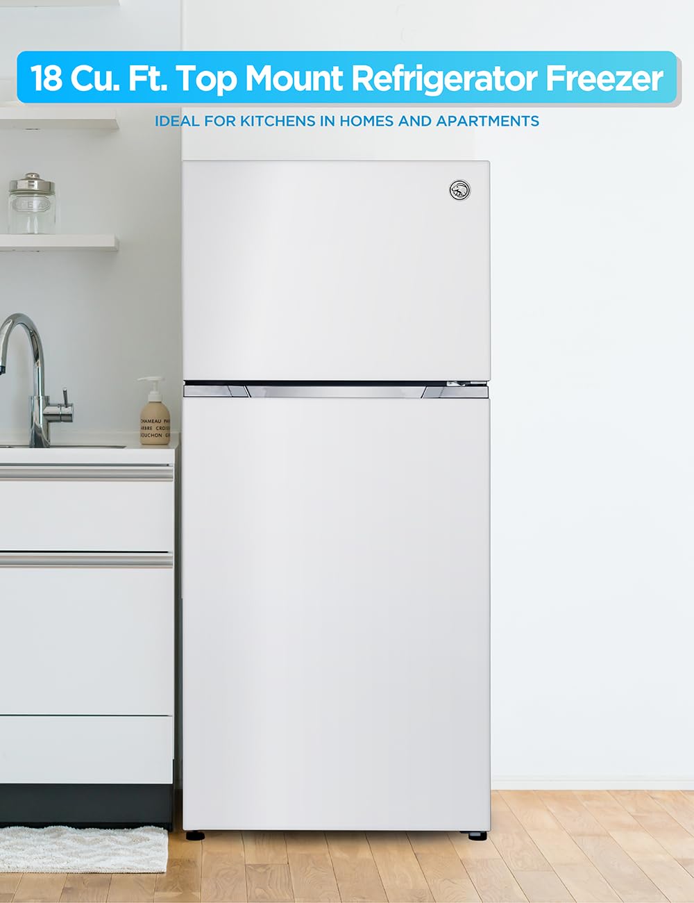 Generous 18 Cu. Ft. Capacity: Our full size refrigerator with freezer offers organized storage for fresh and frozen foods. Top freezer refrigerator fits perfectly in kitchens in homes and apartments