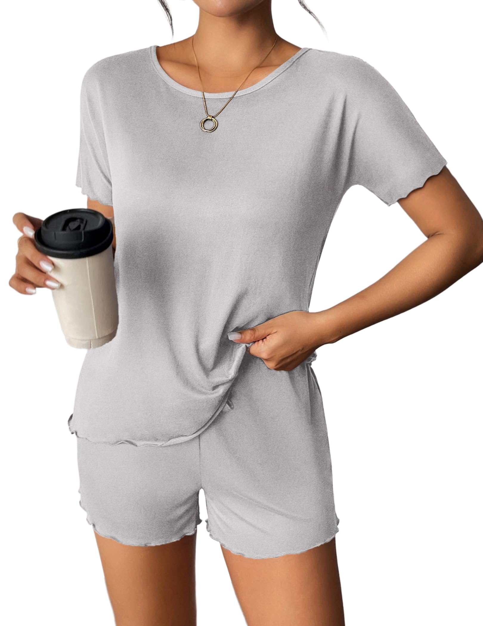 🌙MATCH -- Pajama tops of this women pajama sets can easily match with skirt, leggings, skinny pants, jeans or also pajama. Pjs shorts can be worn with all t-shirts for a casual look. 2 pieces sets match with sneakers, sports shoes perfectly.