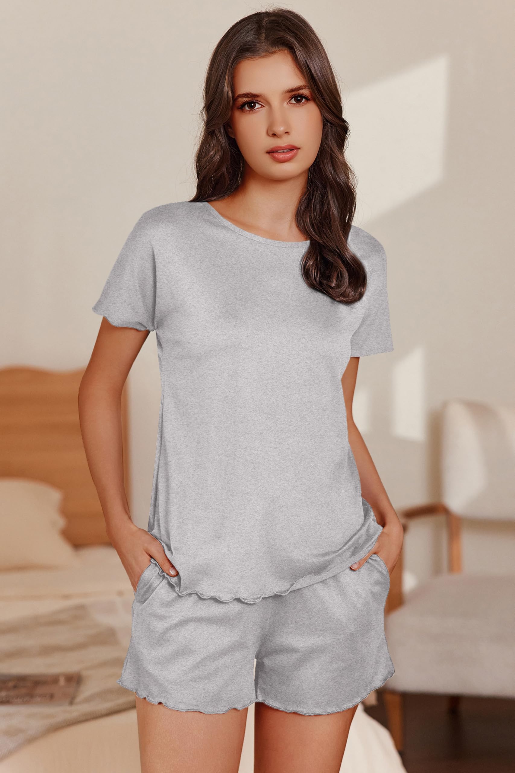 🌙PAJAMAS SHORTS -- Discreet side pockets of this lounge sets for women securely hold your phone or lip balm during lazy days. Adjustable drawstring waist of pjs sets for women comfortably fits all waist sizes.Four-way stretch fabric allows full mobility for yoga or quick errands.