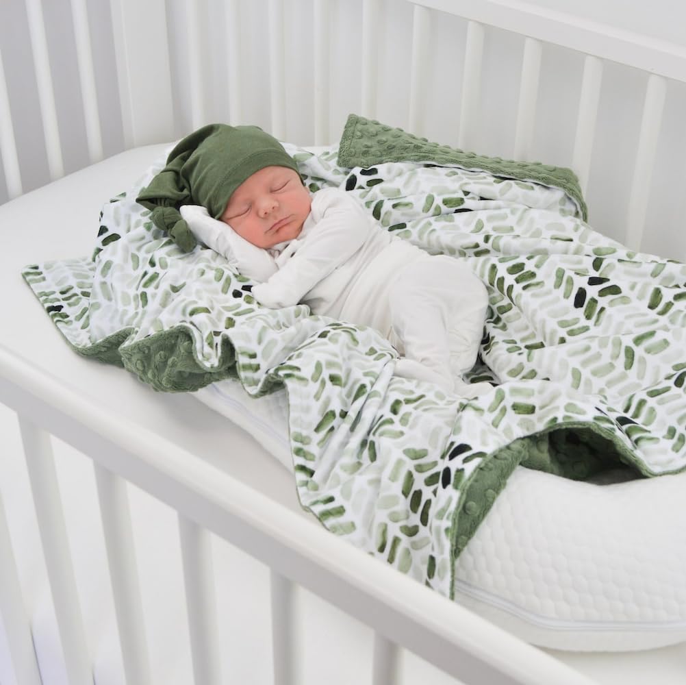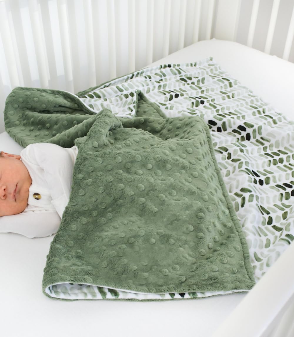 Double Layer Design: This baby blanket features a soft and plush minky fabric on one side with a dotted backing on the other for added warmth and comfort.