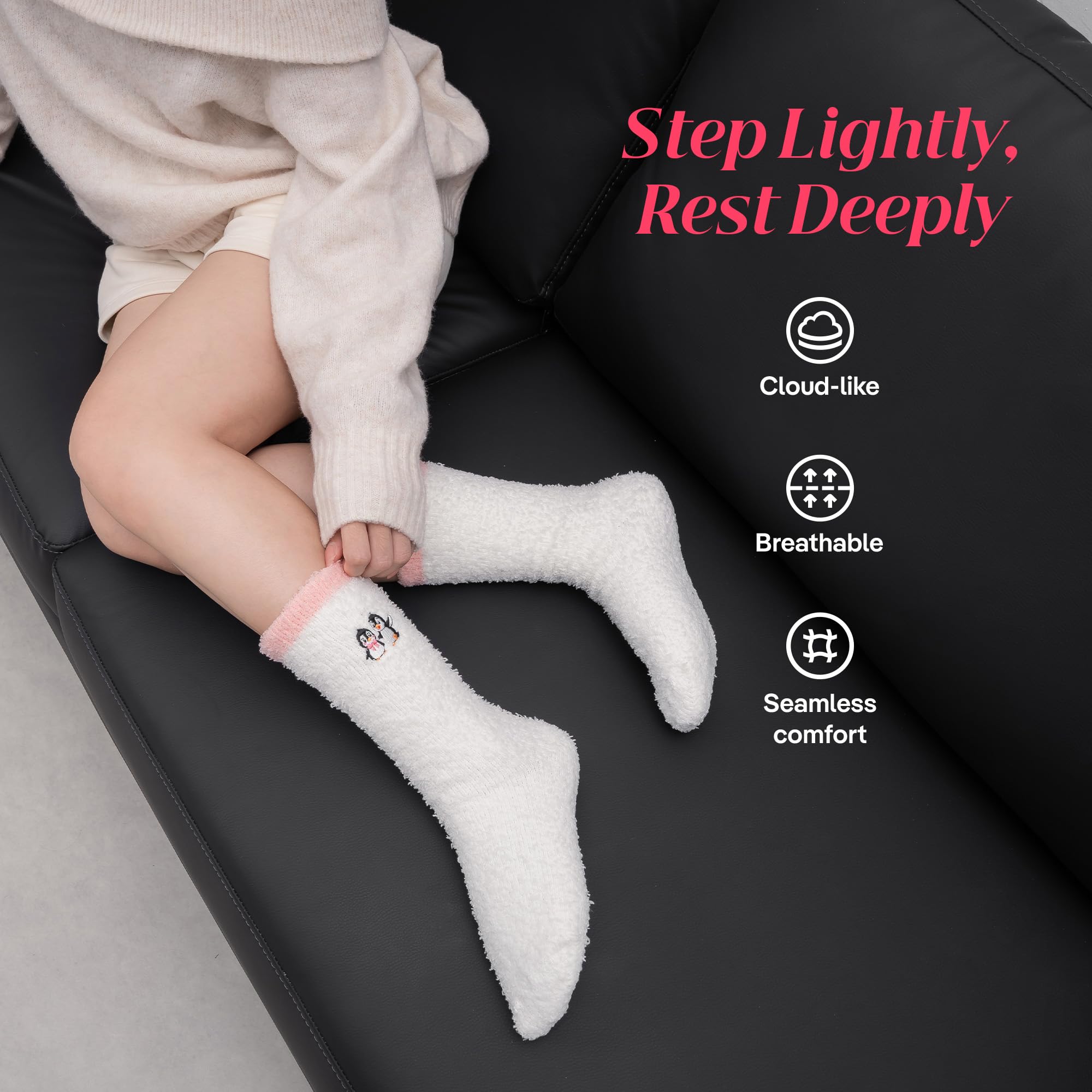 Ultra-Soft & Cozy: Our fuzzy socks for women are made of eco-friendly basswood fiber, creating a cloud socks experience that feels like walking on air – perfect for daily comfort & healing relaxation, gifts for people who are always cold.